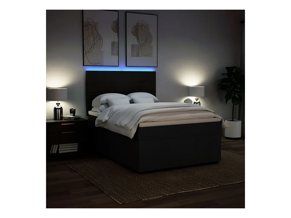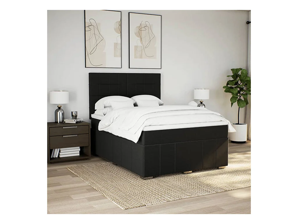 Sommier à lattes de lit avec matelas Noir 160x200 cm Tissu