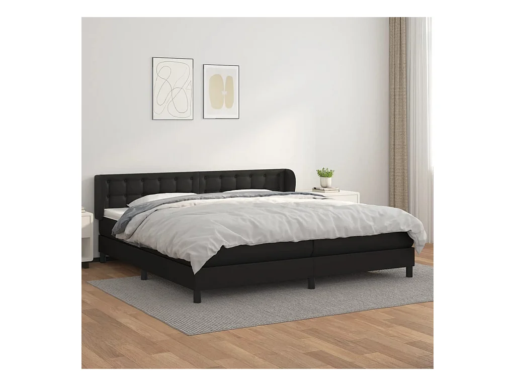 Sommier à lattes de lit avec matelas Noir 200x200 Similicuir