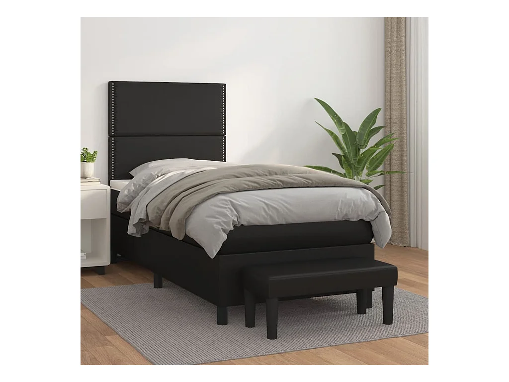 Sommier à lattes de lit avec matelas Noir 90x200 Similicuir