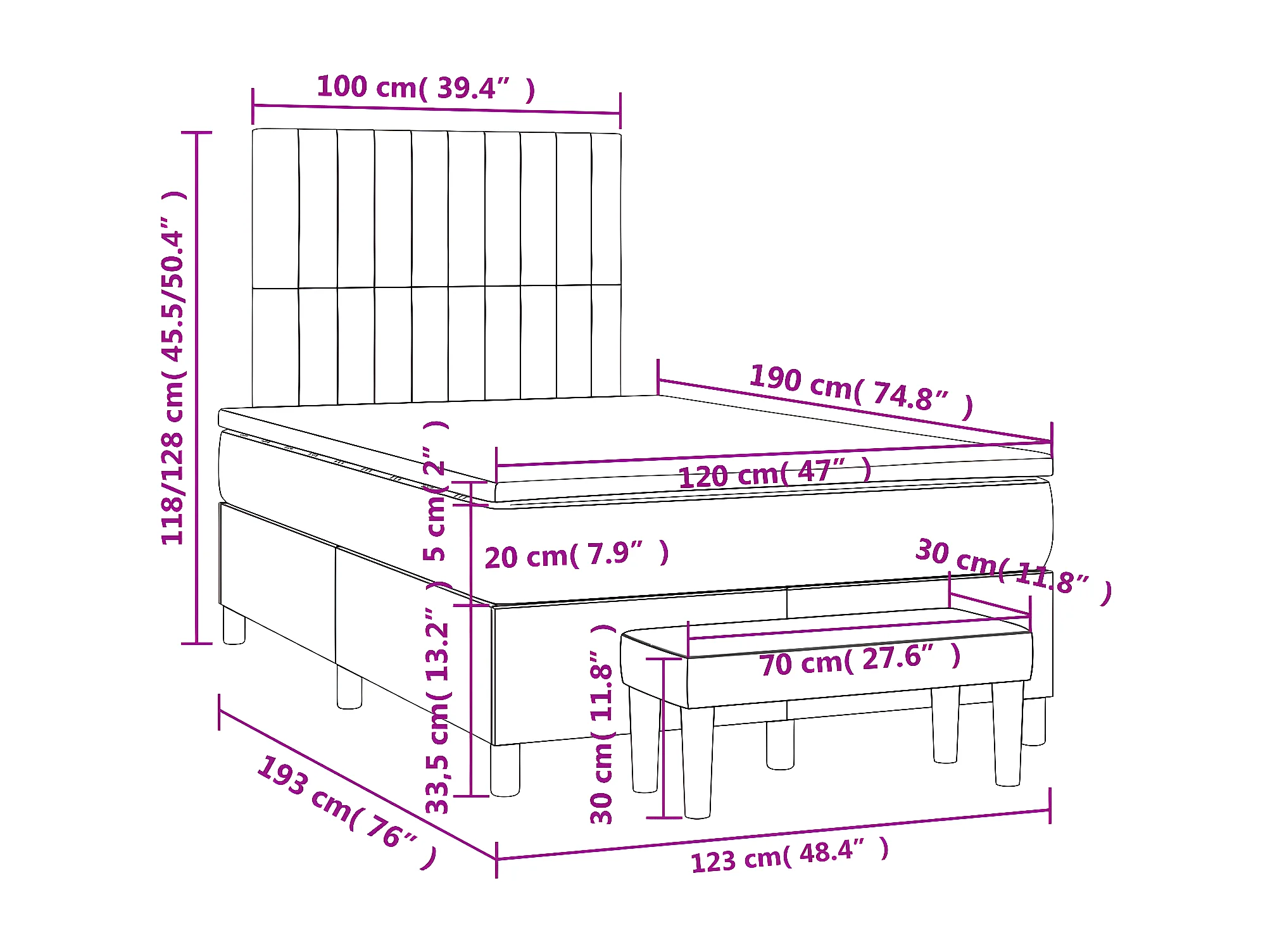 Sommier à lattes de lit et matelas bleu foncé 120x190cm velours