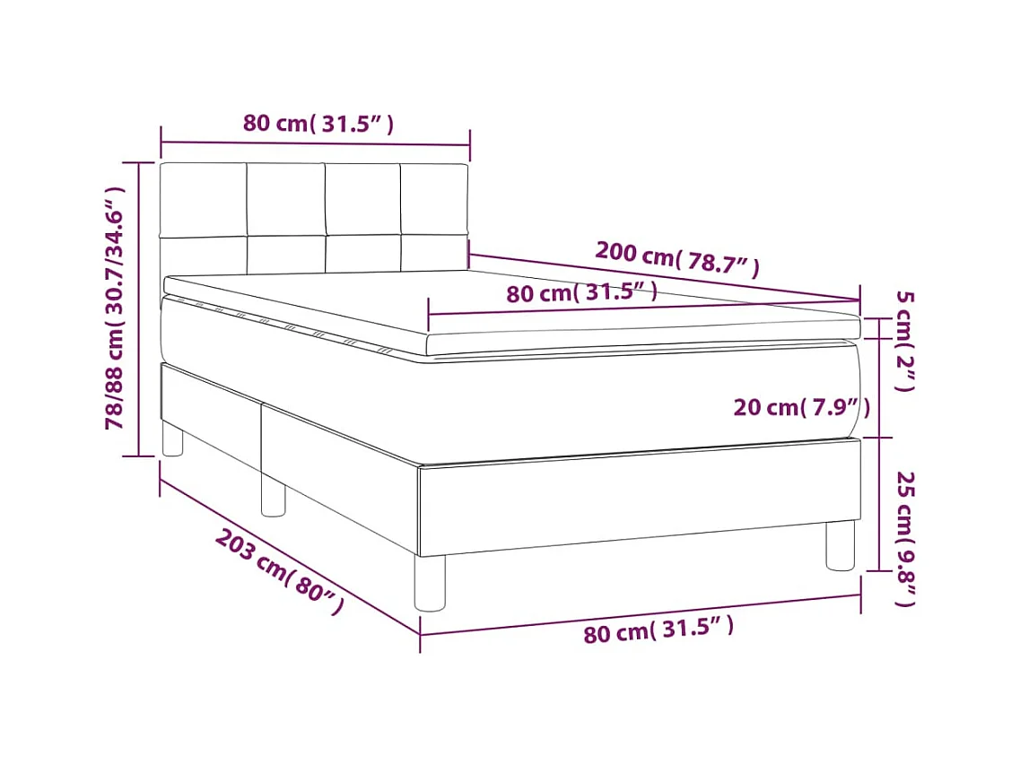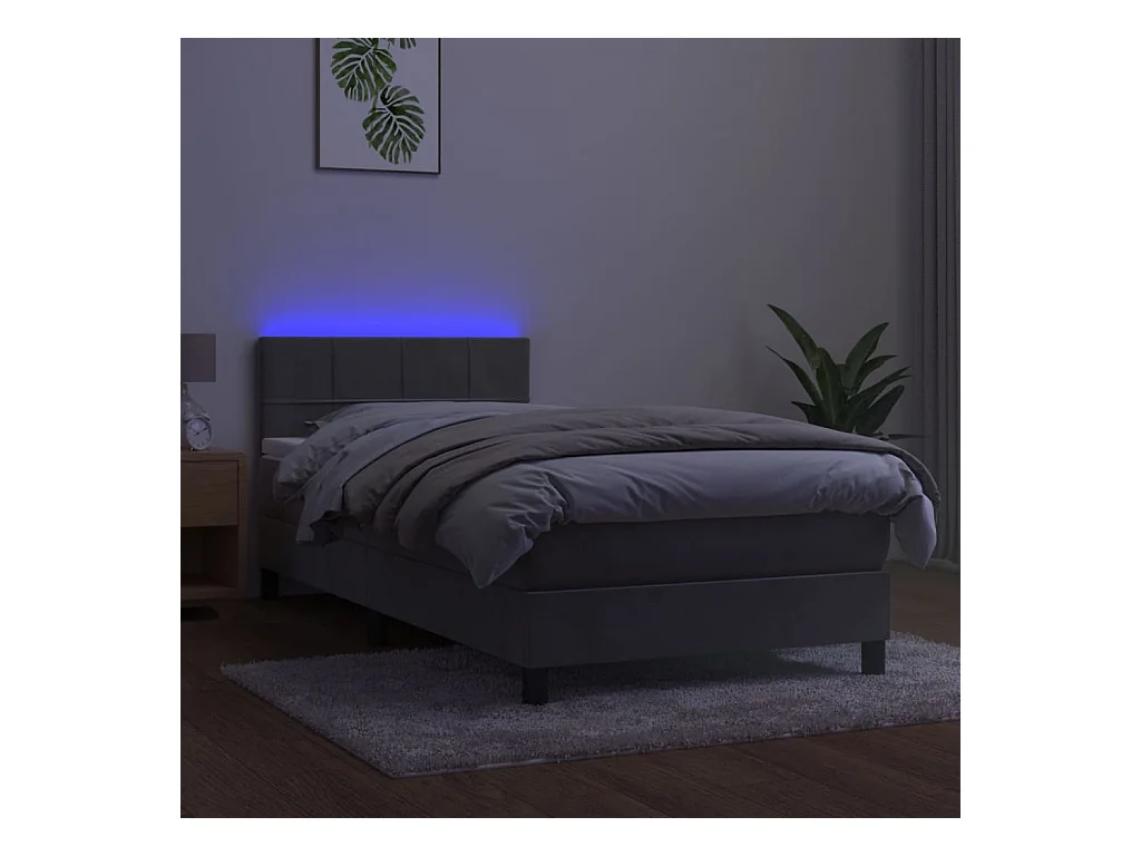 Sommier à lattes de lit et matelas et LED Gris clair 80x200