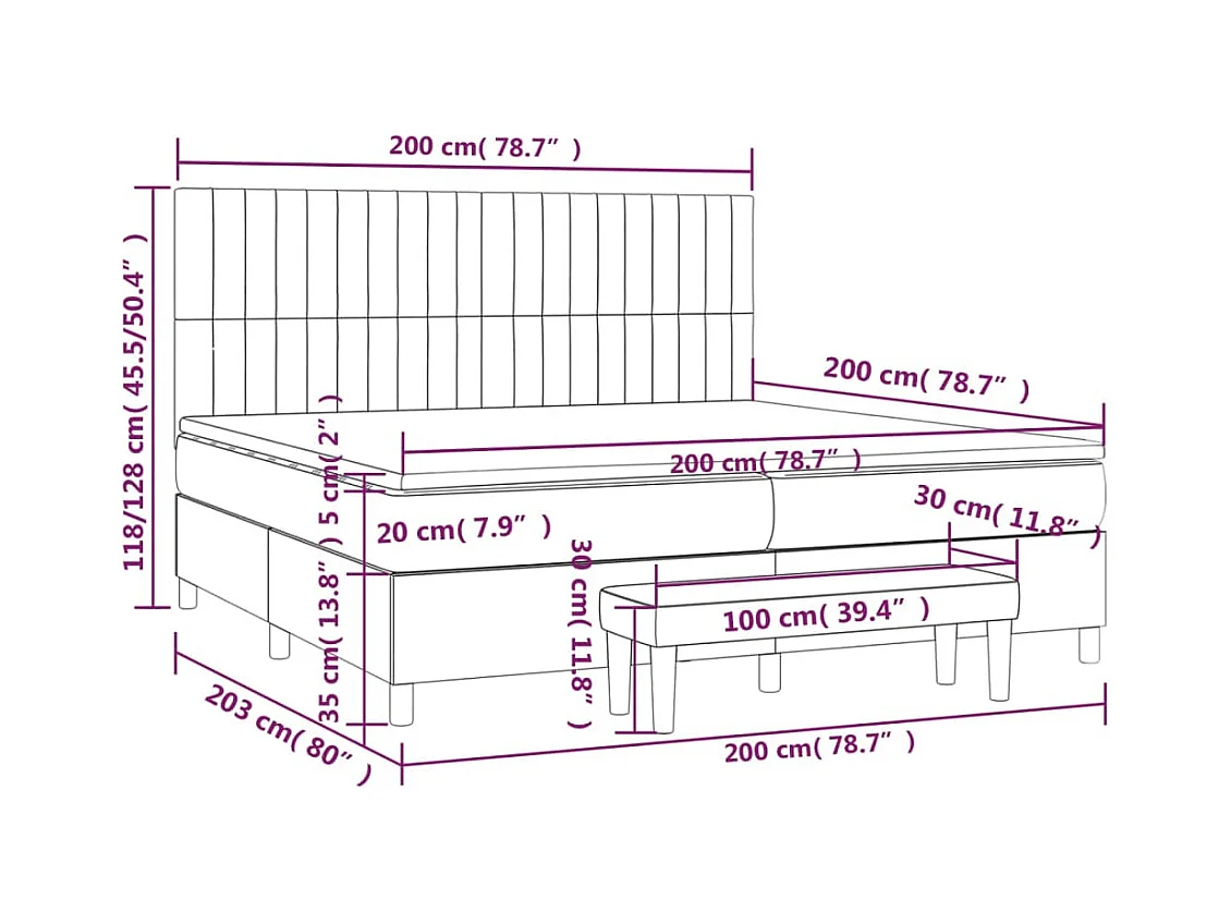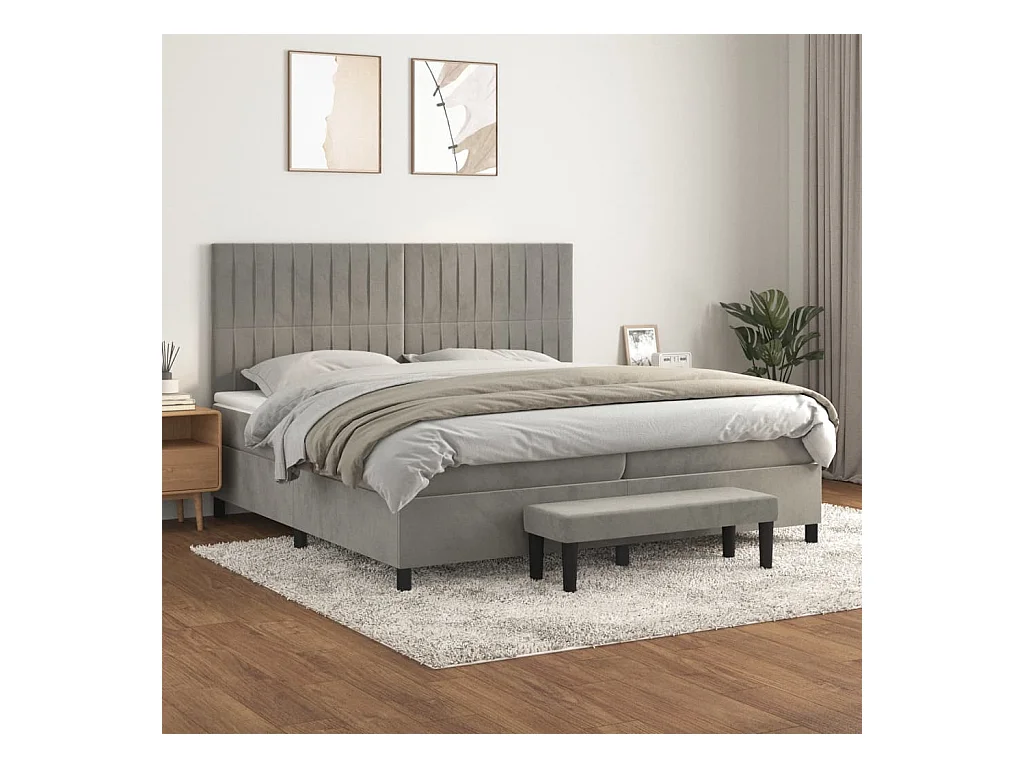 Sommier à lattes de lit et matelas Gris clair 200x200 Velours