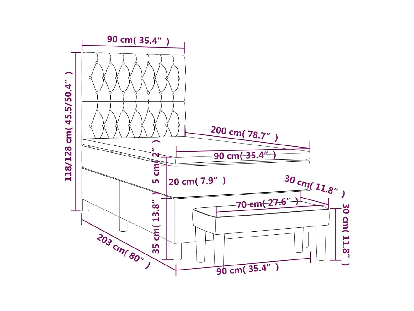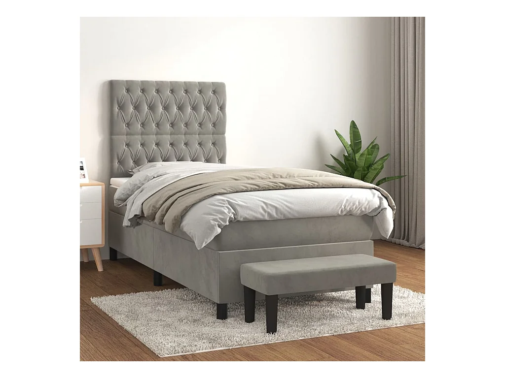 Sommier à lattes de lit et matelas Gris clair 90x200 Velours