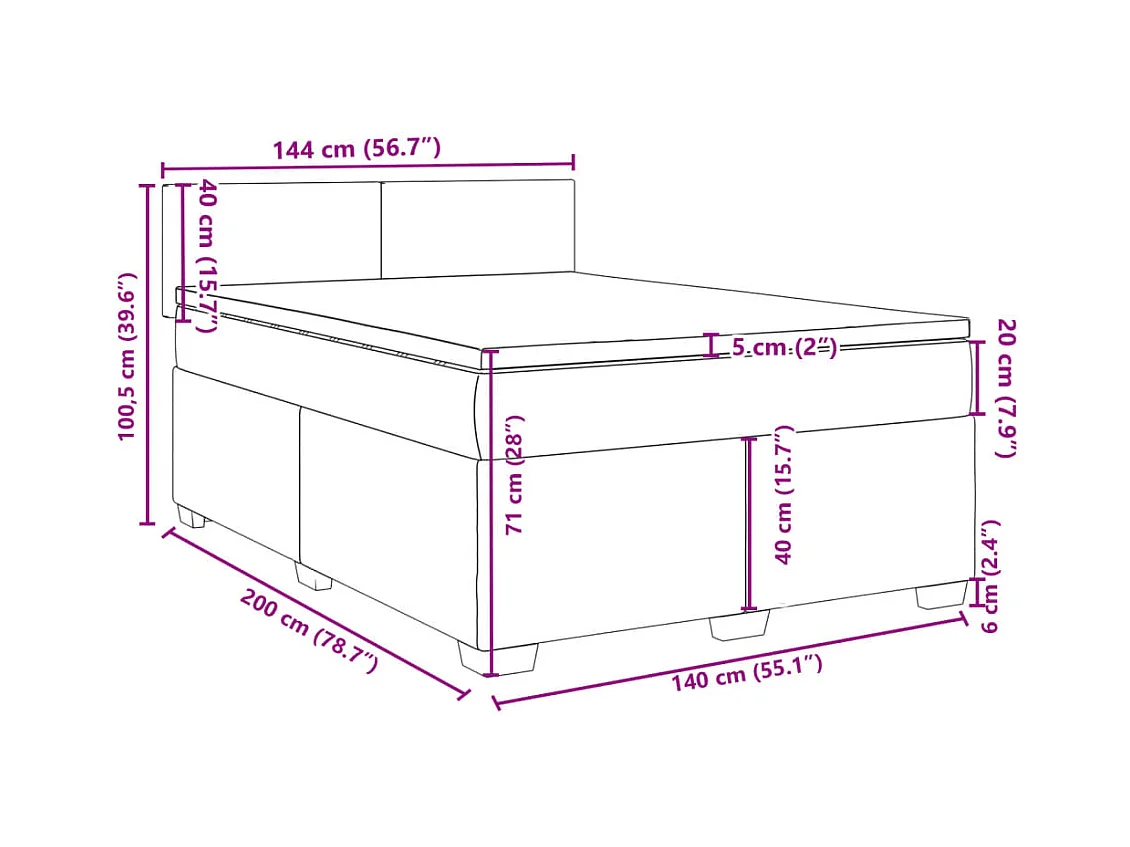 Sommier à lattes de lit et matelas Gris foncé 140x200cm Velours