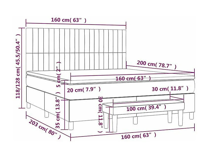 Sommier à lattes de lit et matelas Gris foncé 160x200 Velours