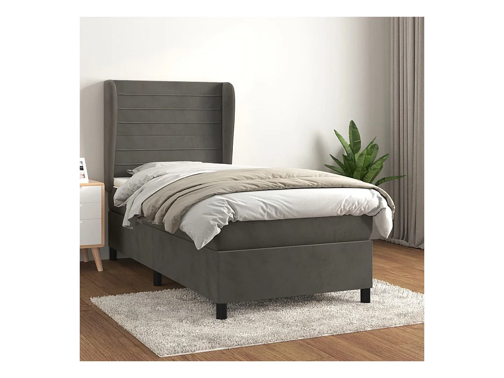 Sommier à lattes de lit et matelas Gris foncé 90x200 Velours