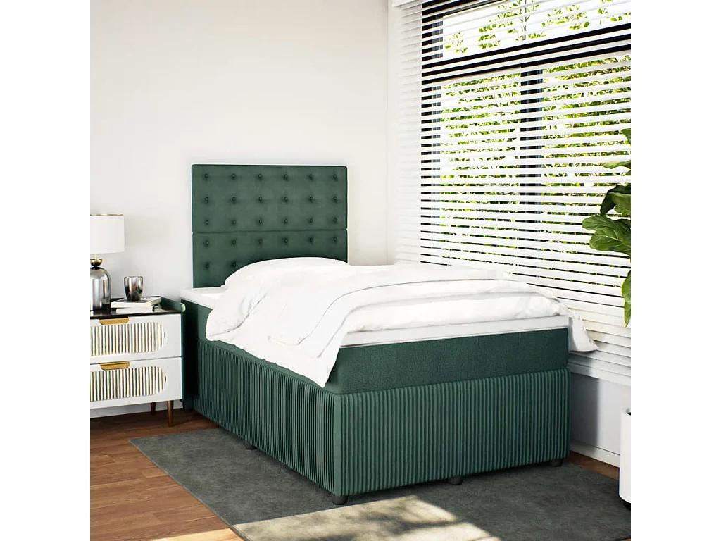 Sommier à lattes de lit et matelas Vert foncé 120x200cm Velours