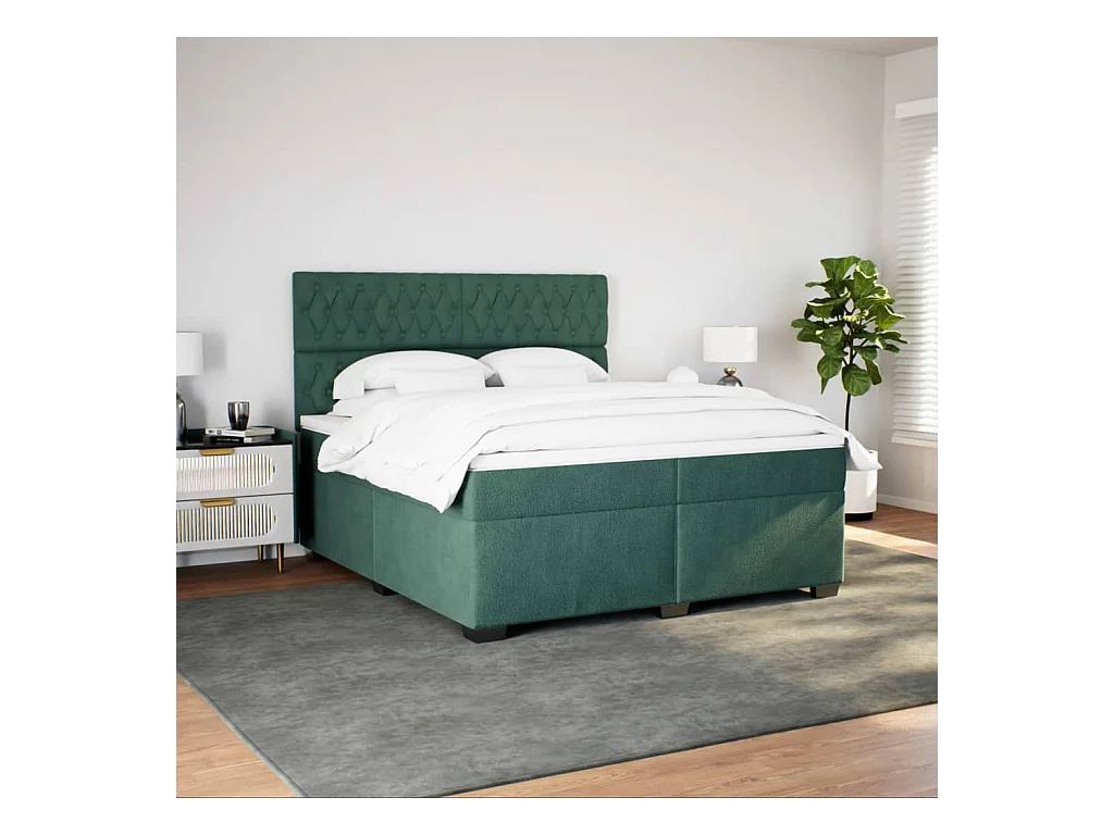 Sommier à lattes de lit et matelas Vert foncé 200x200cm Velours