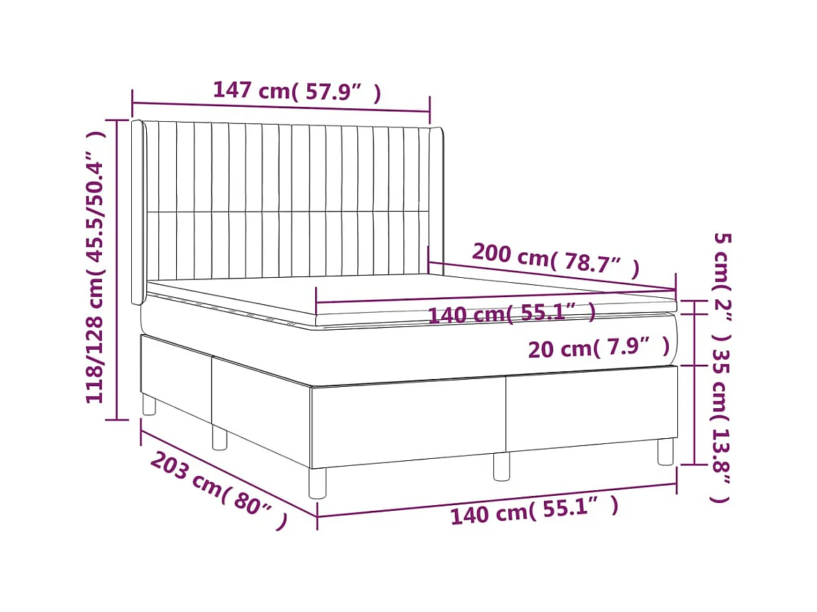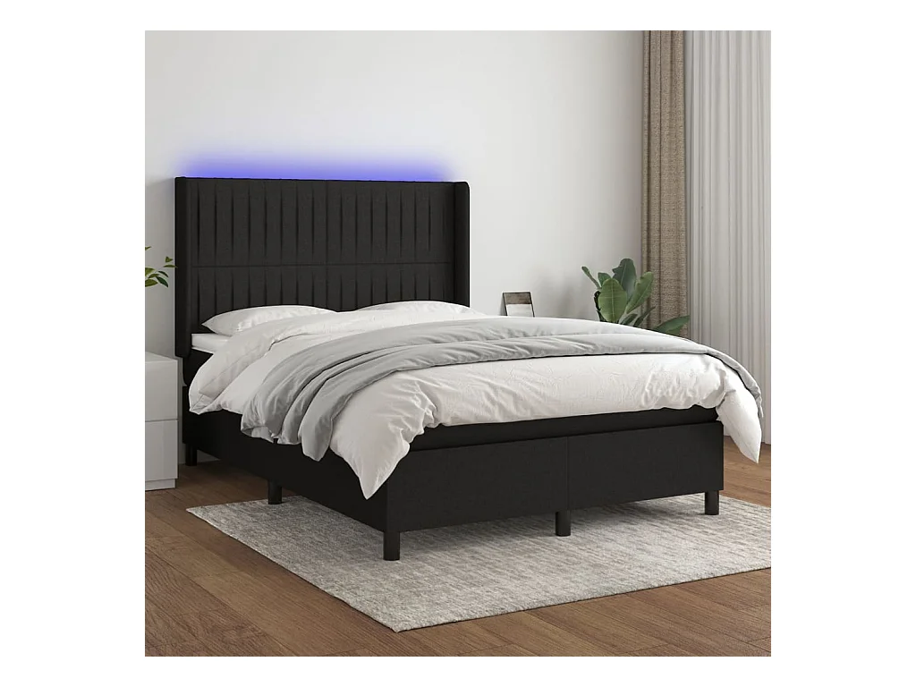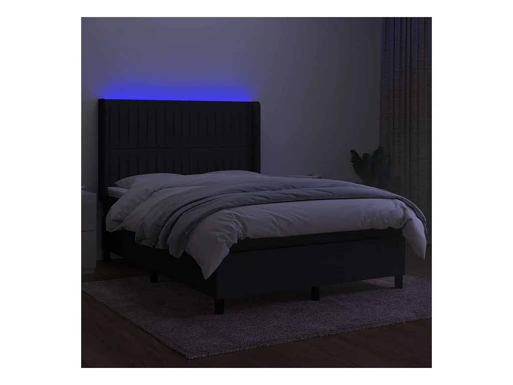 Sommier à lattes de lit matelas et LED Noir 140x200 Tissu