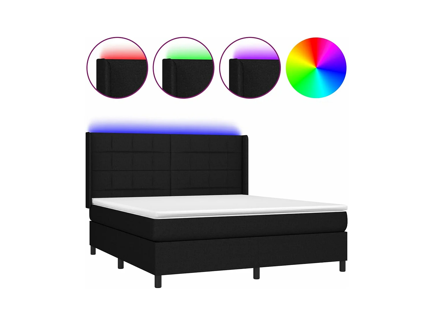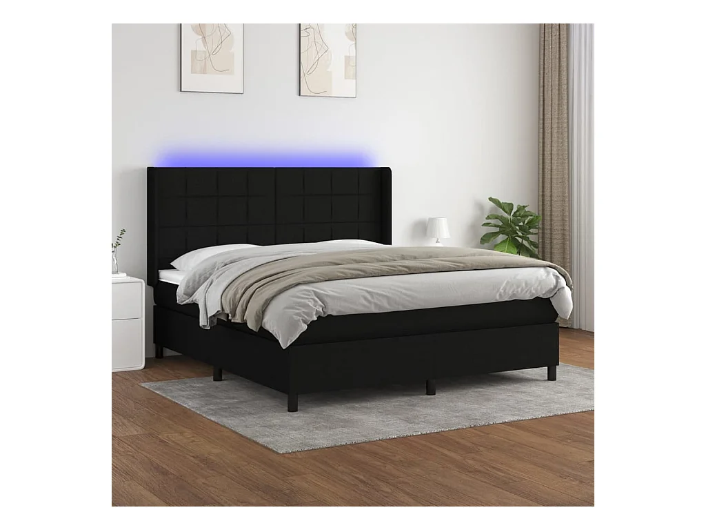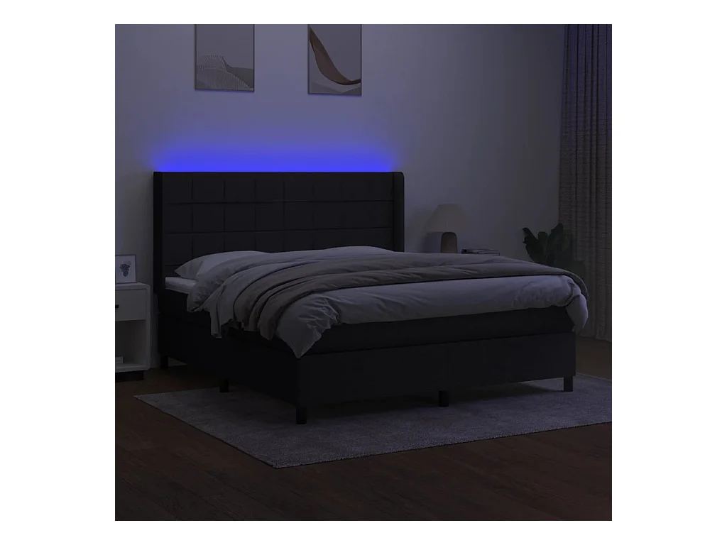 Sommier à lattes de lit matelas et LED Noir 180x200 Tissu