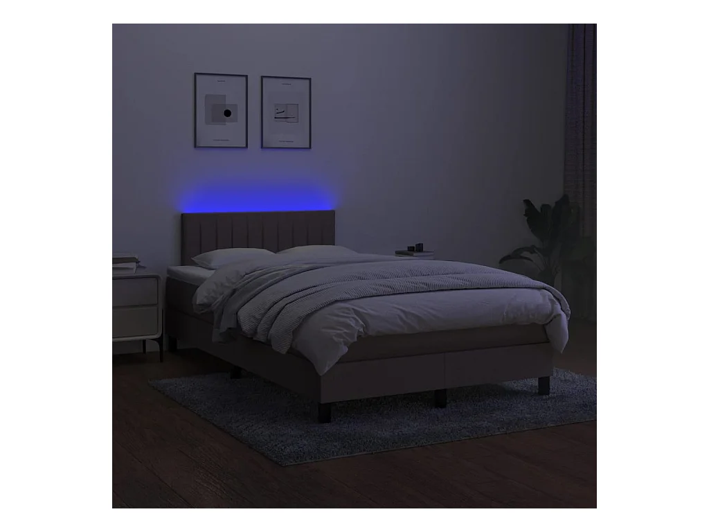 Sommier à lattes de lit matelas et LED taupe 120x190 tissu