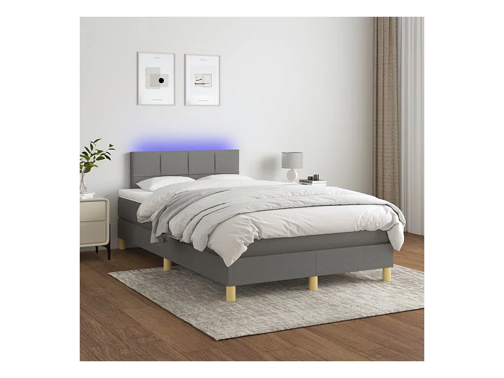 Sommier à lattes de lit matelas LED gris foncé 120x190 tissu