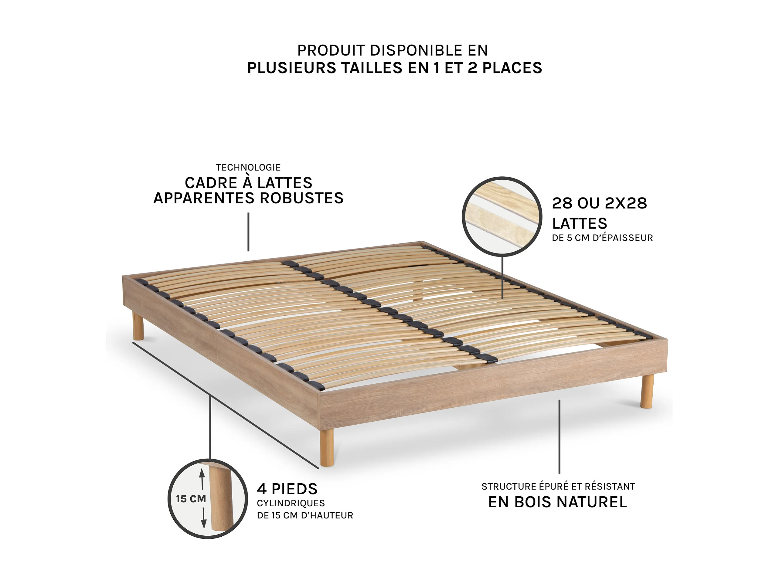 Sommier à lattes en KIT- Bois - Couleur naturelle 90x200 CM