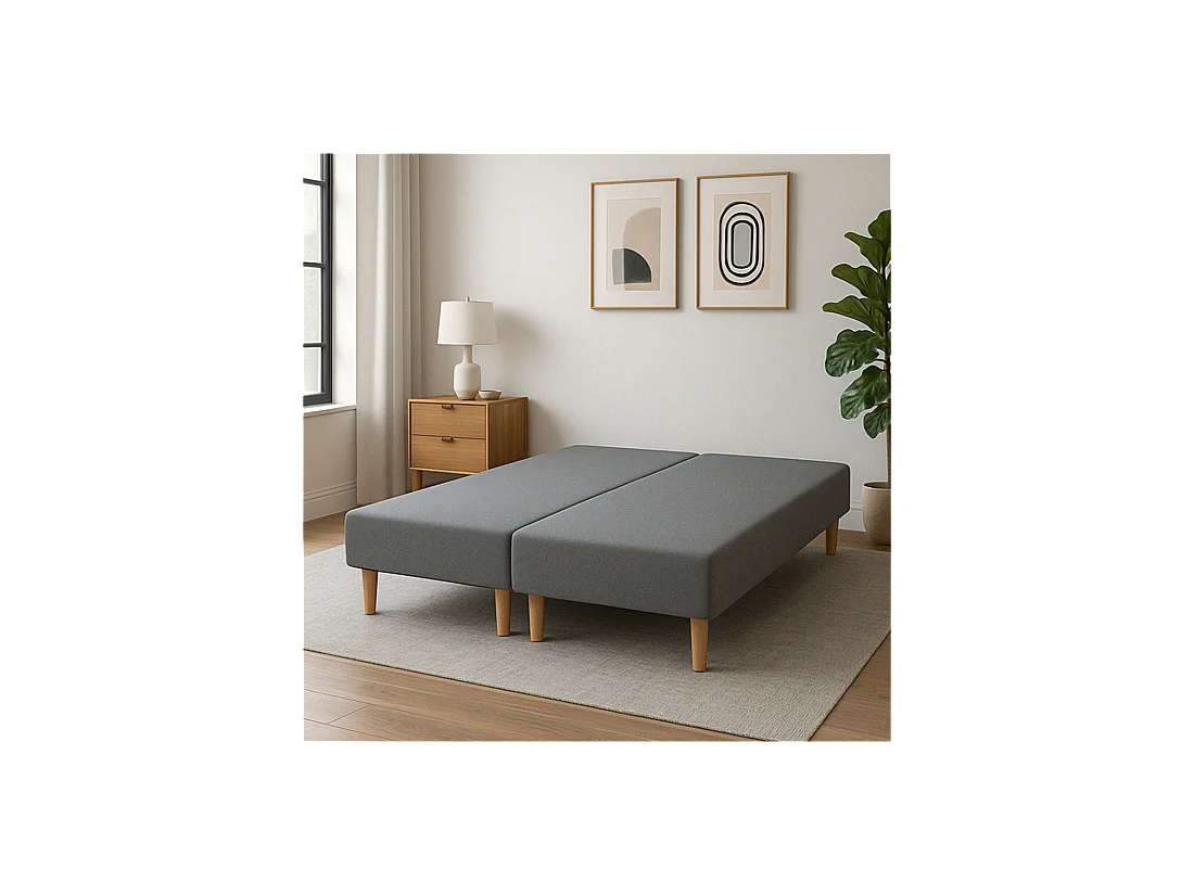 SOMMIER TAPISSIER GRIS 70x190x2 (140x190) | FABRICATION FRANÇAISE ARTISANALE | PIEDS OFFERTS | HAUTEUR avec PIEDS 27 cm