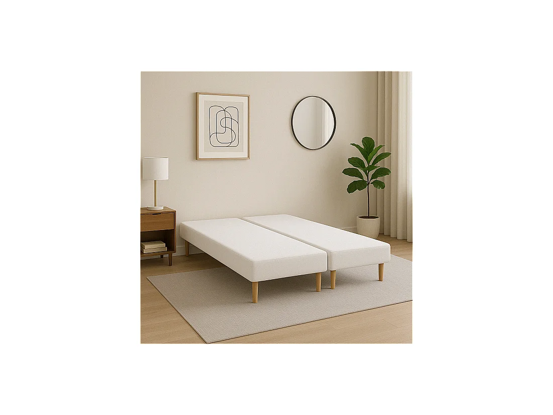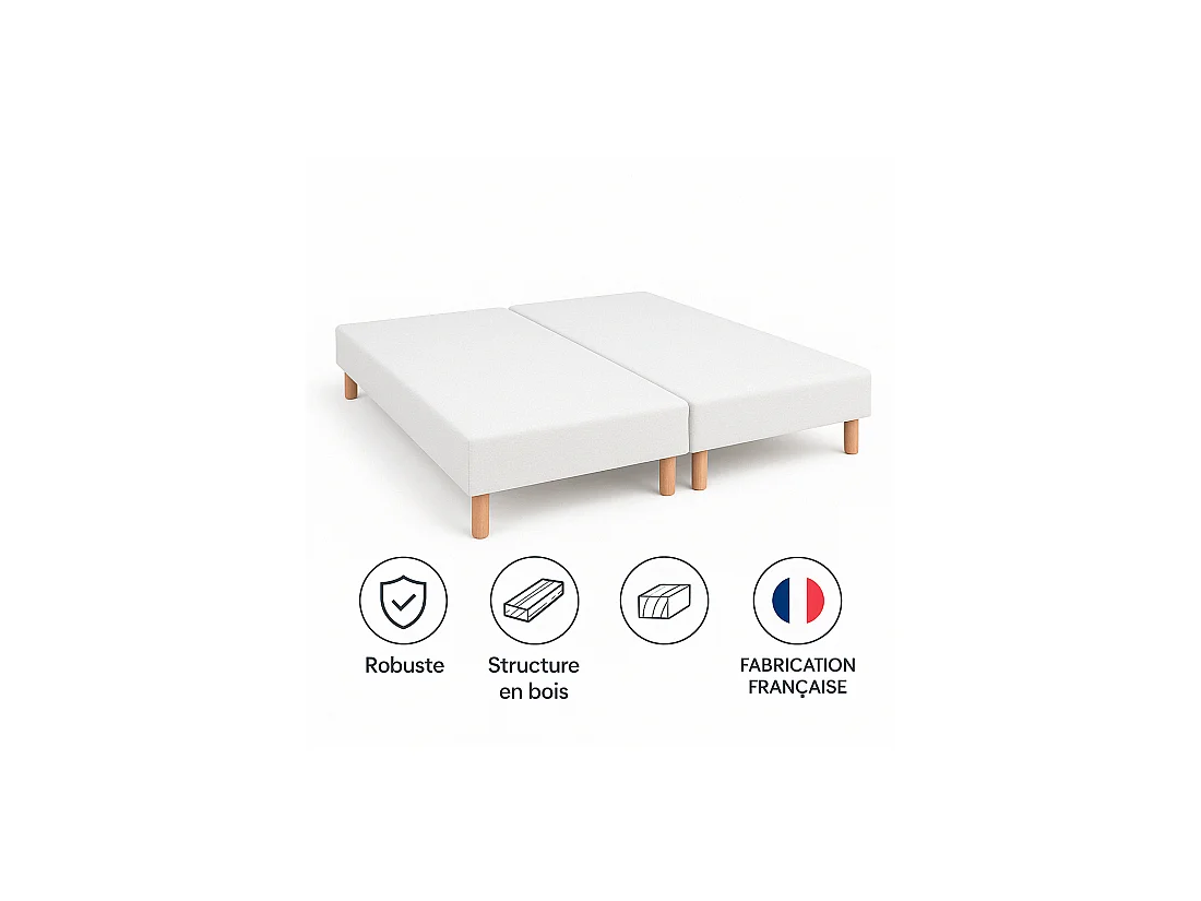 SOMMIER TAPISSIER BLANC 90x200x2 (180x200) FABRICATION FRANÇAISE ARTISANALE PIEDS OFFERTS HAUTEUR avec PIEDS 27 cm