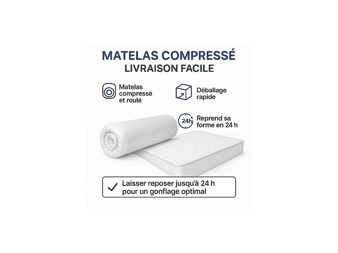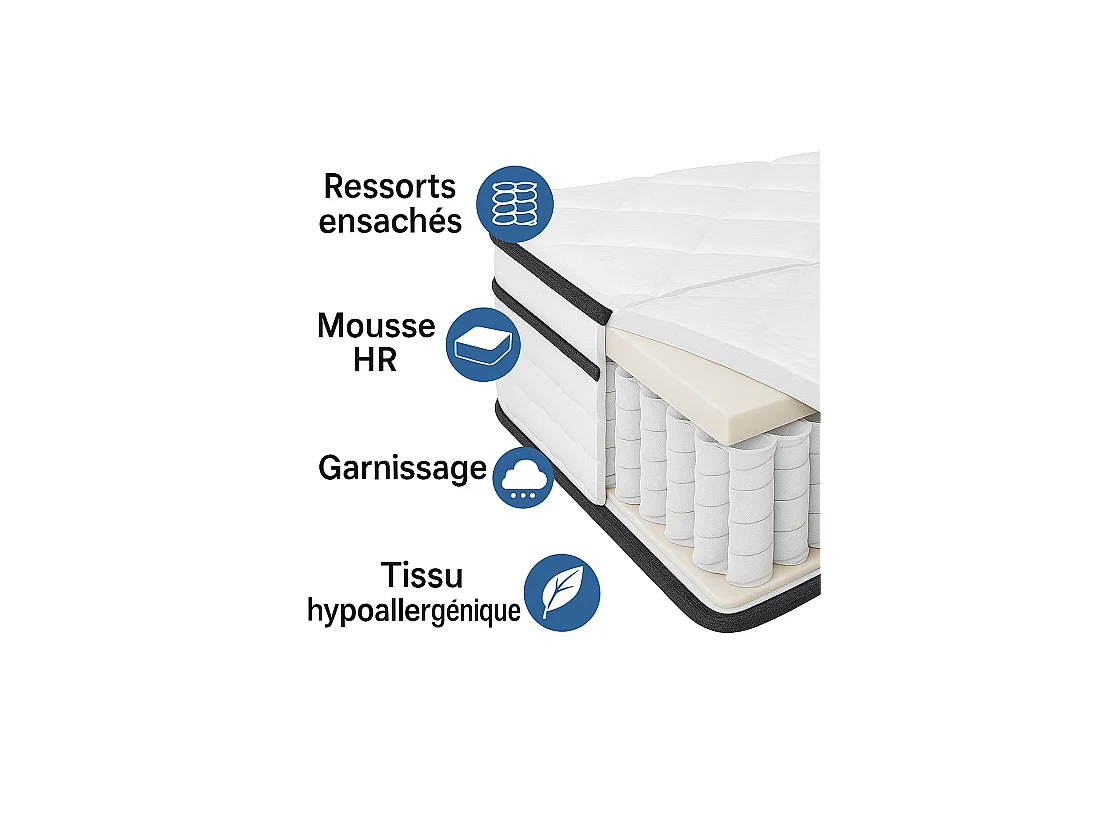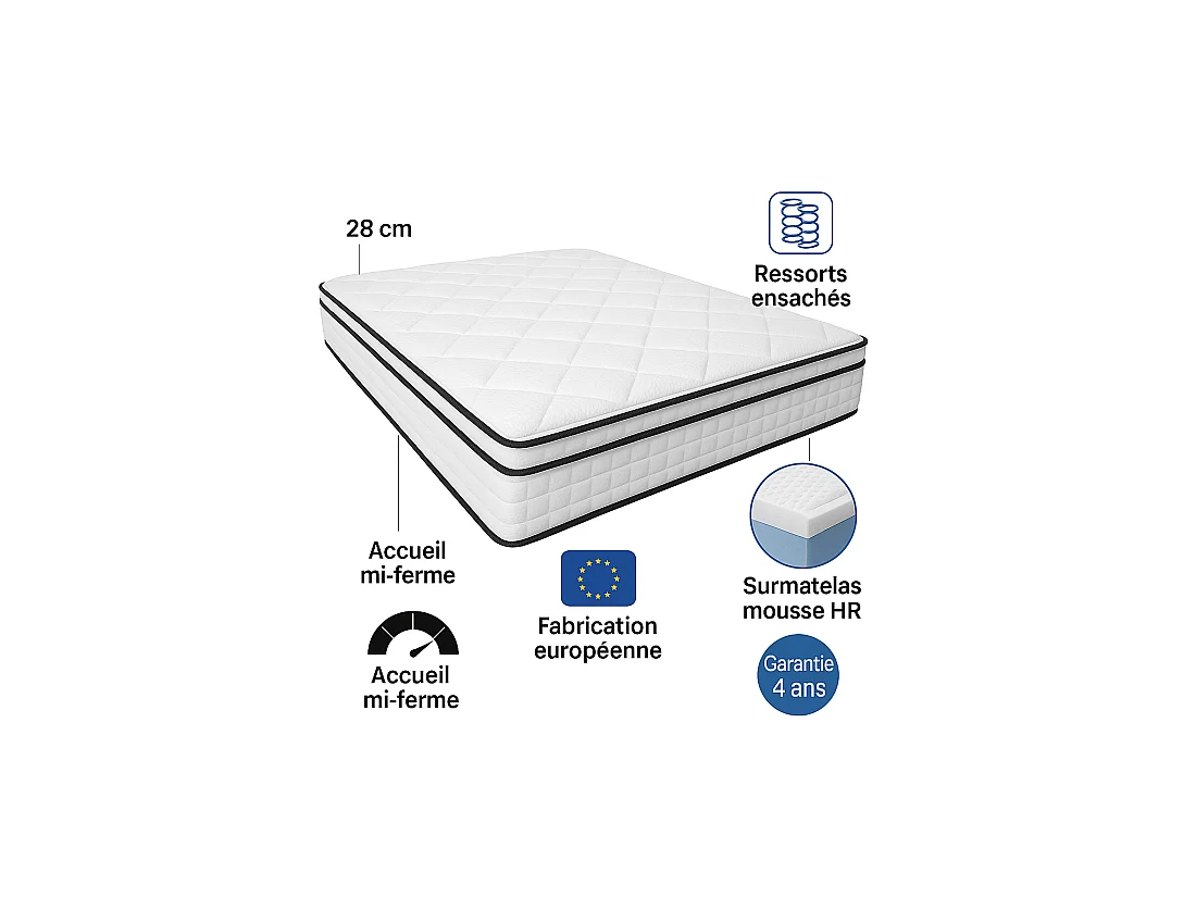 Matelas 140x190 cm Ressorts Ensachés Épaisseur 28 cm Surmatelas Mousse HR Confort MiFerme Garantie 4 Ans