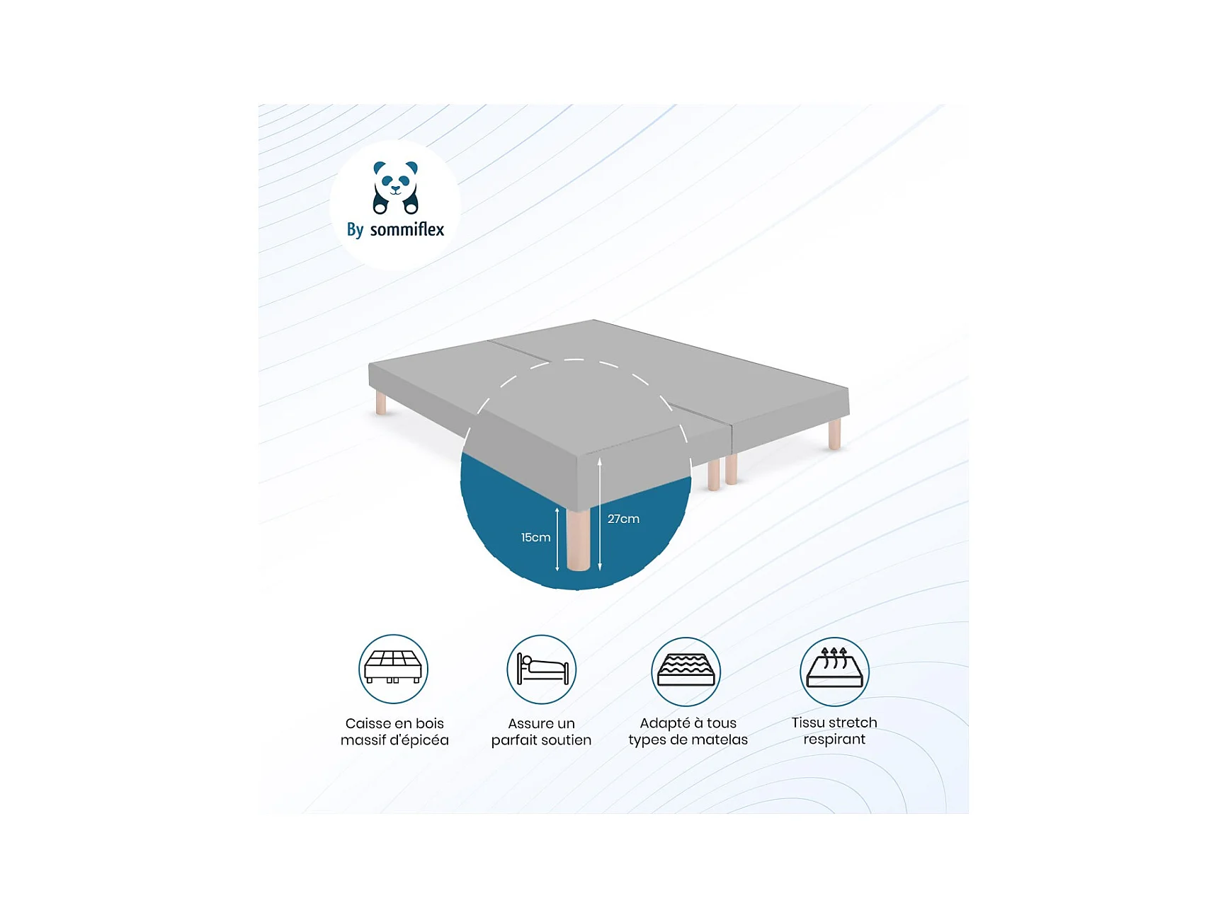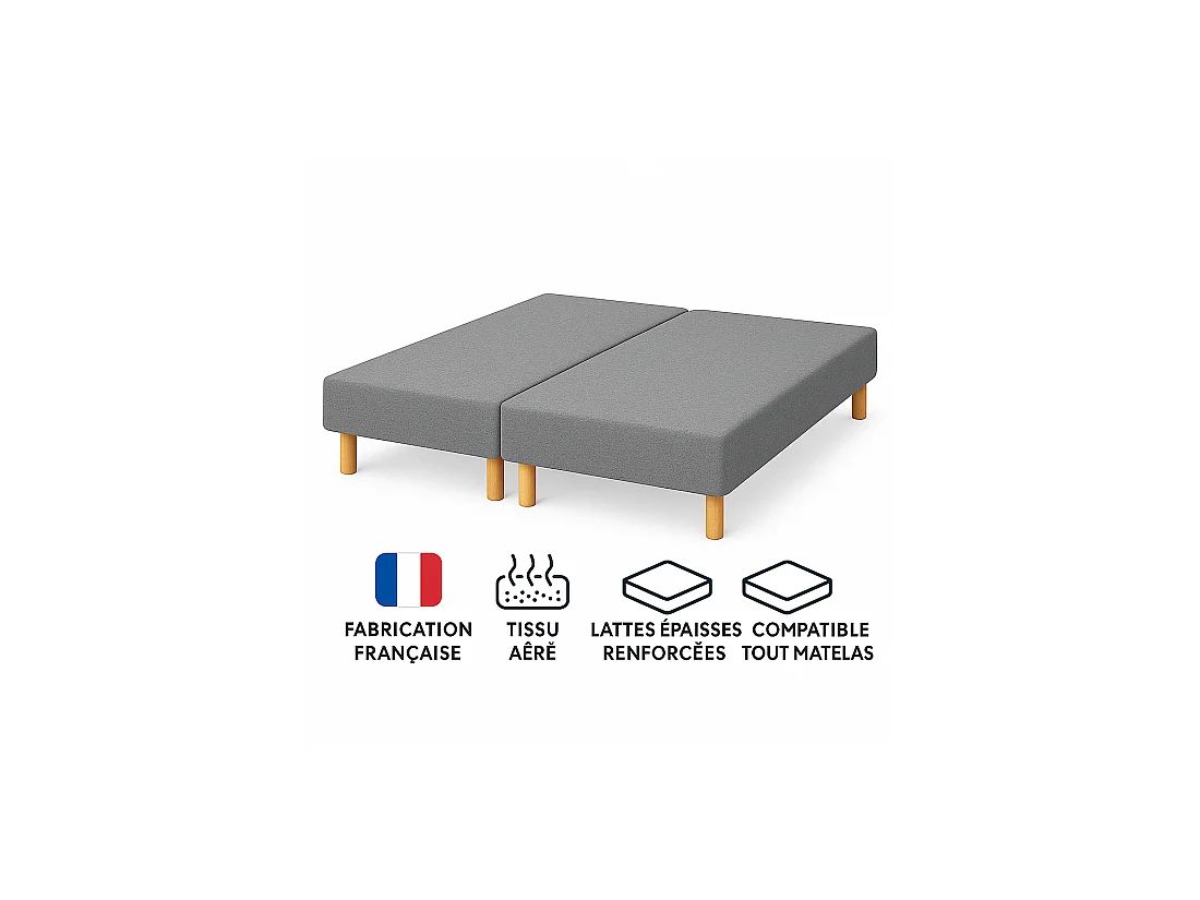 SOMMIER TAPISSIER GRIS 70x200x2 (140x200) | FABRICATION FRANÇAISE ARTISANALE | PIEDS OFFERTS | HAUTEUR avec PIEDS 27 cm
