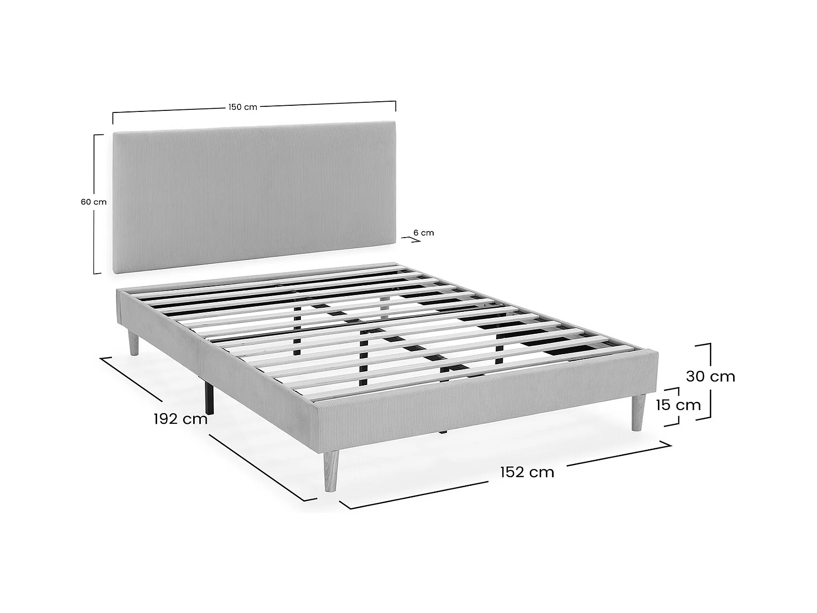 Sommier + tête de lit Bari 160x200 cm couleur Gris