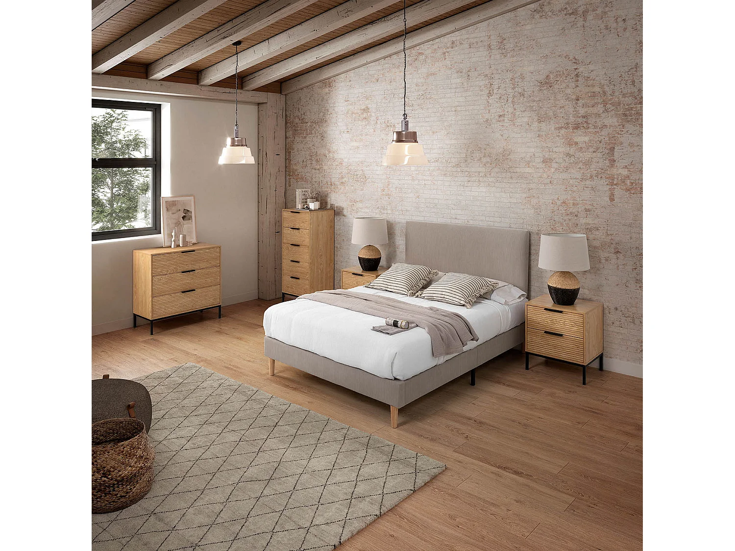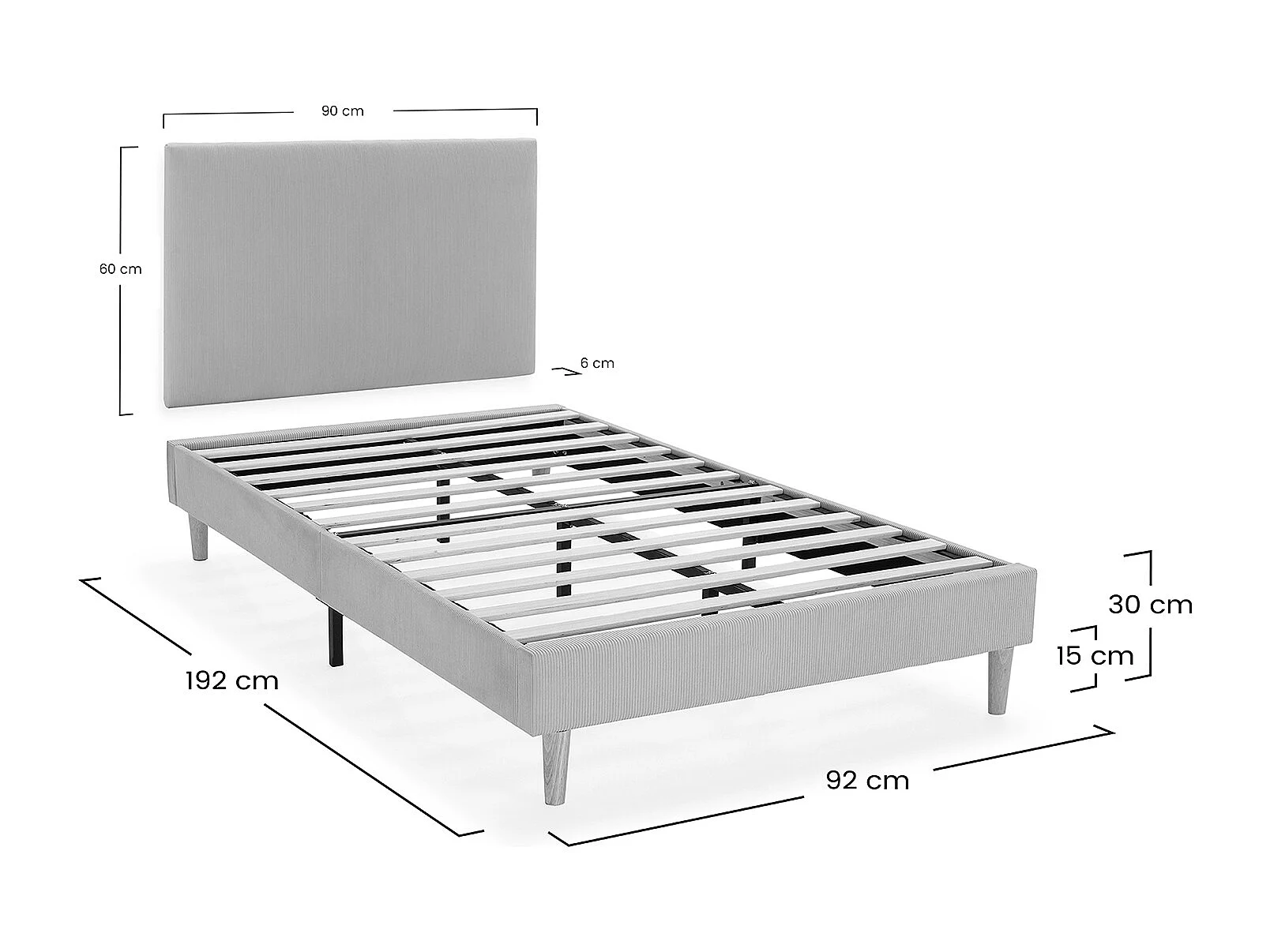 Sommier + tête de lit Bari 90x190 cm couleur Gris