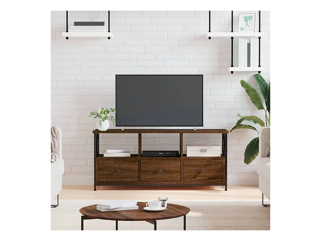 Sophie-Bernadette-Marie Meuble TV chêne marron 102x33x45 cm bois d'ingénierie et fer