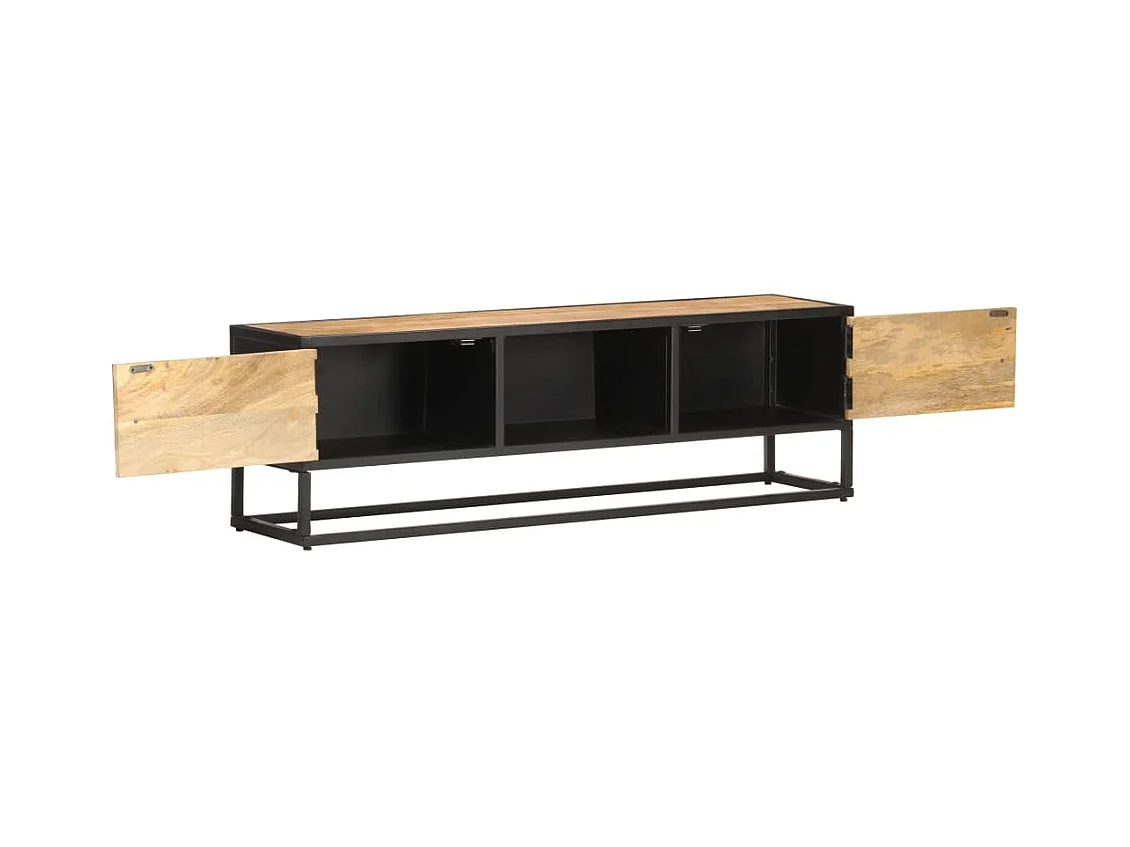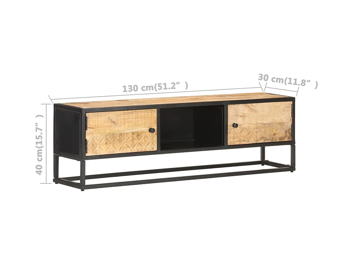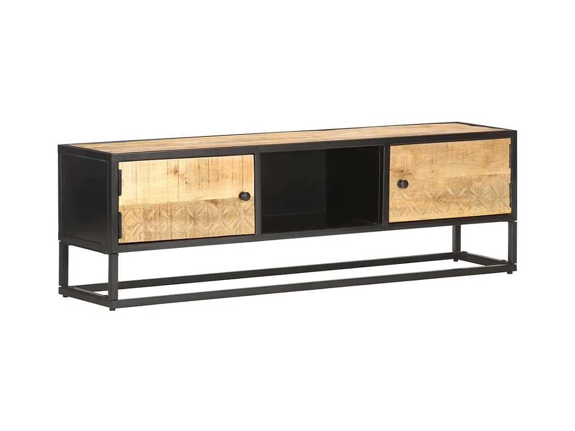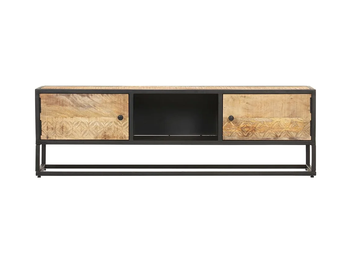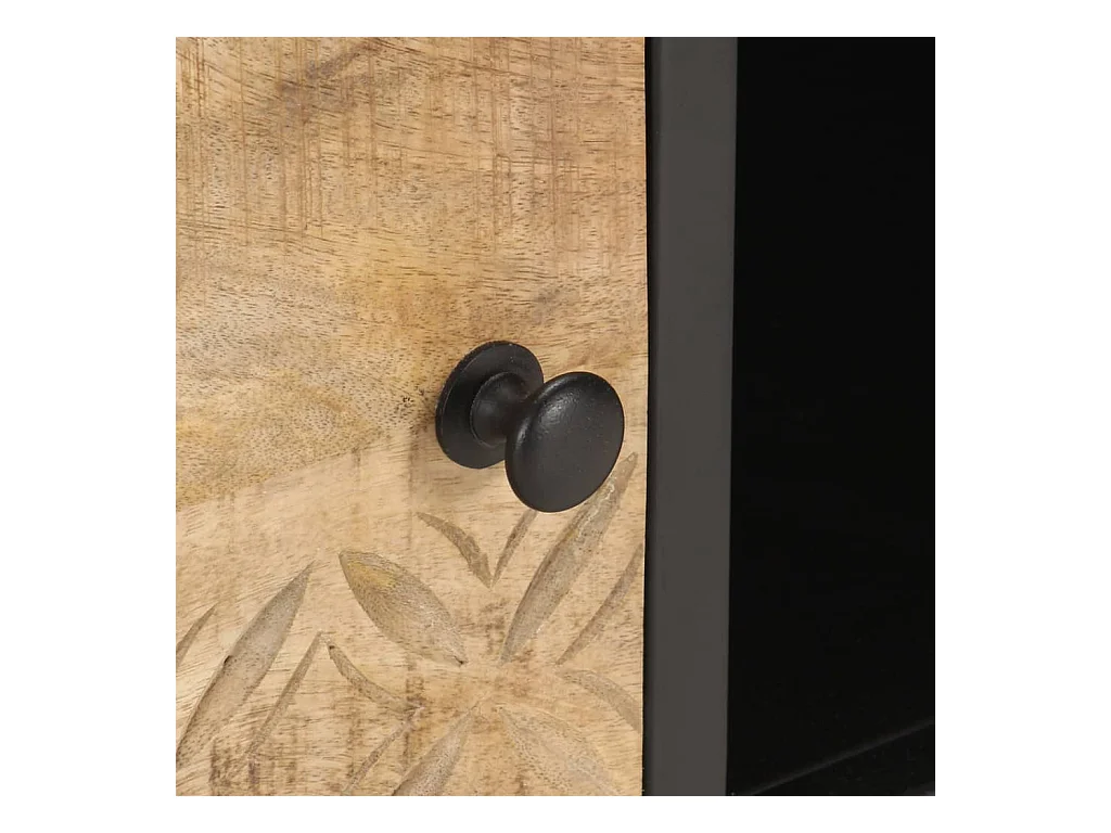 Sophie-Gaëlle Meuble TV avec porte sculptée 130x30x40cm Bois de manguier brut