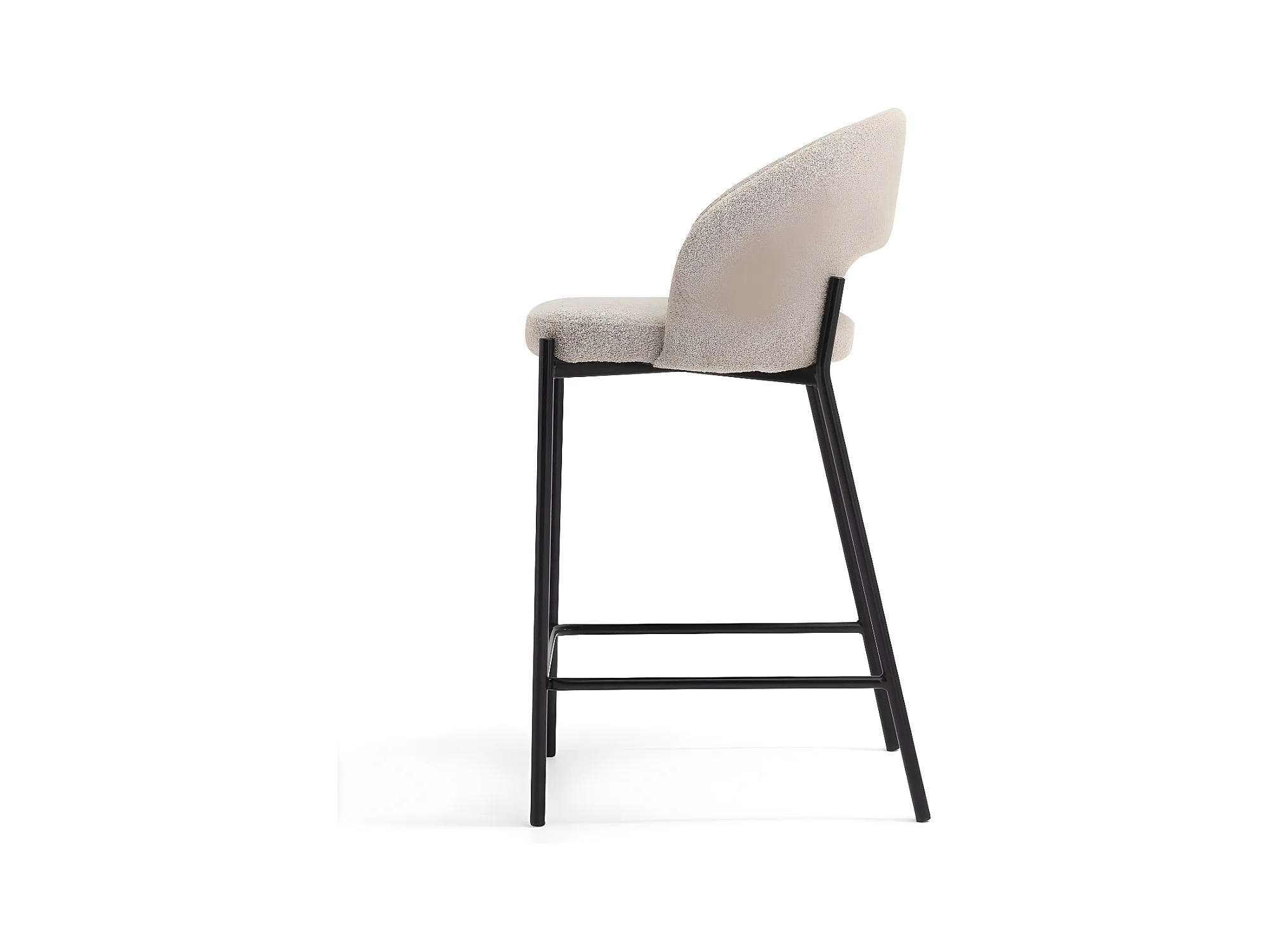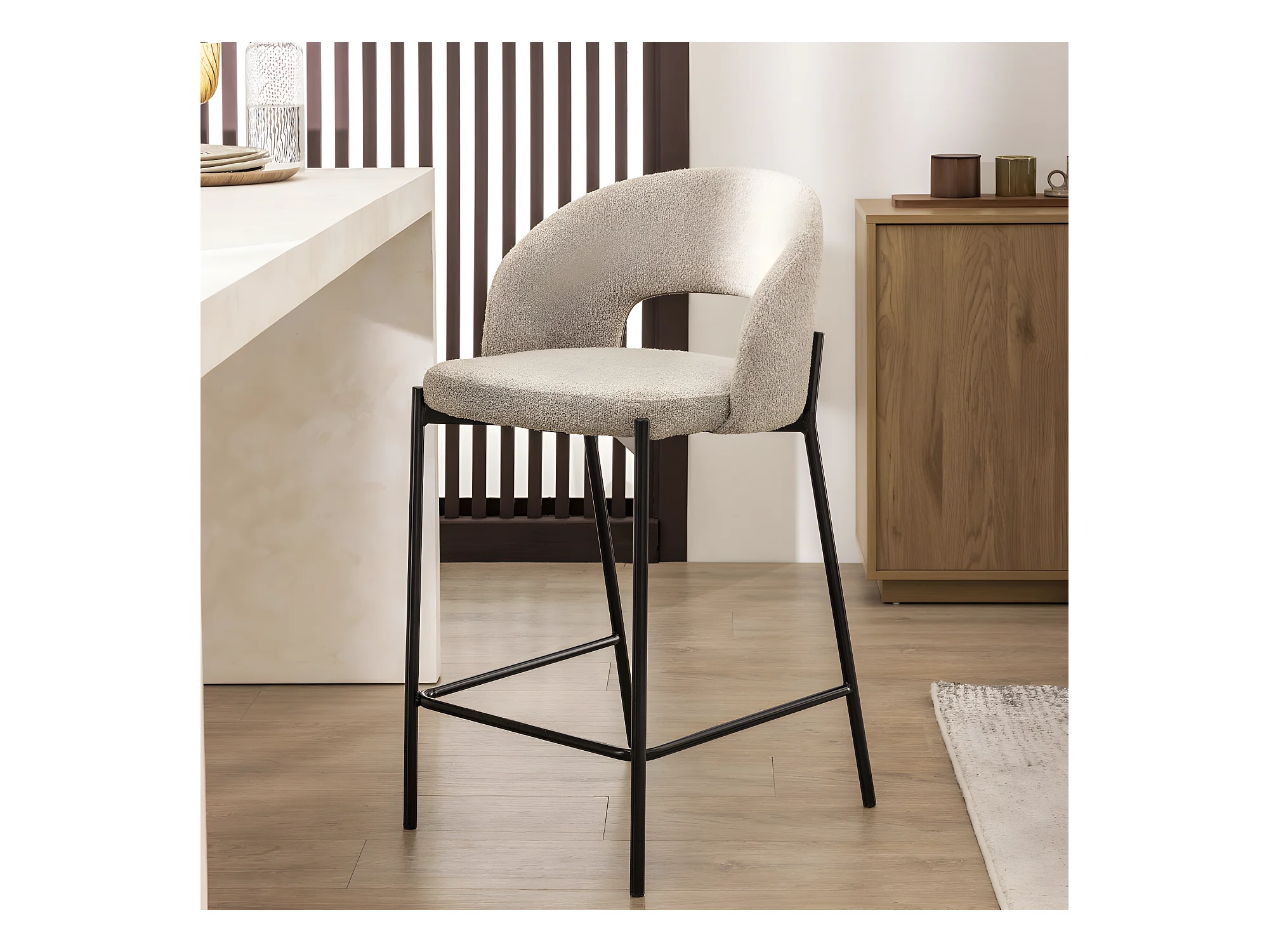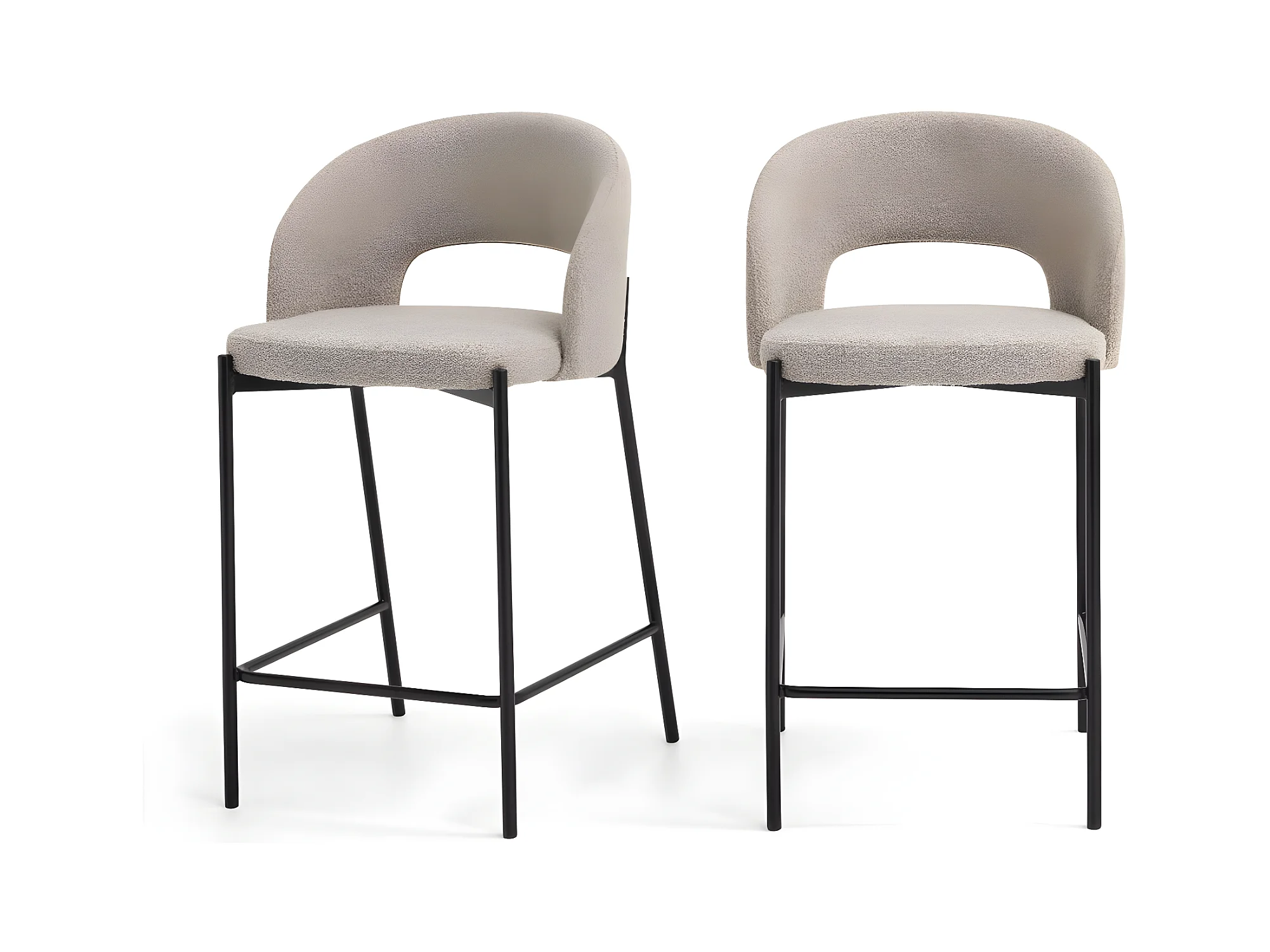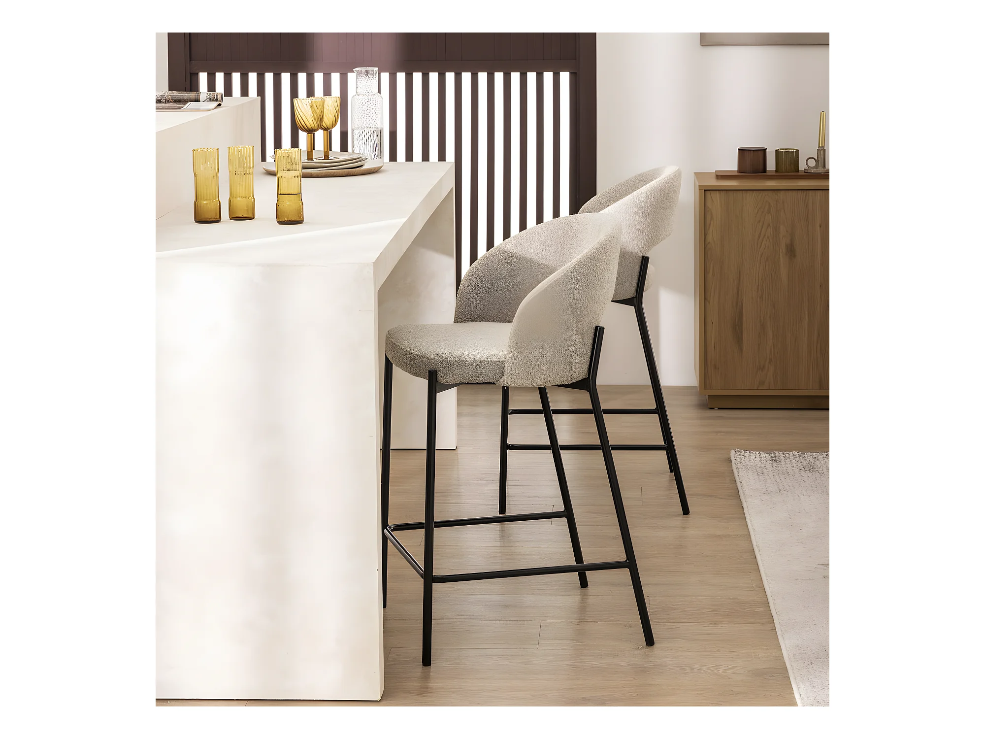Soren - Lot de 2 chaises de bar en tissu bouclette et métal H65cm - Beige chiné