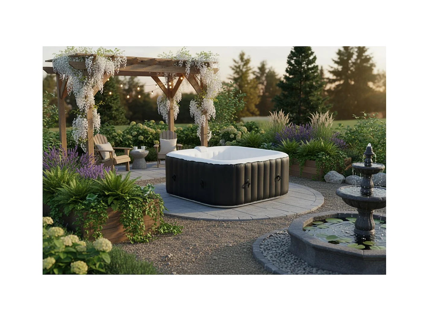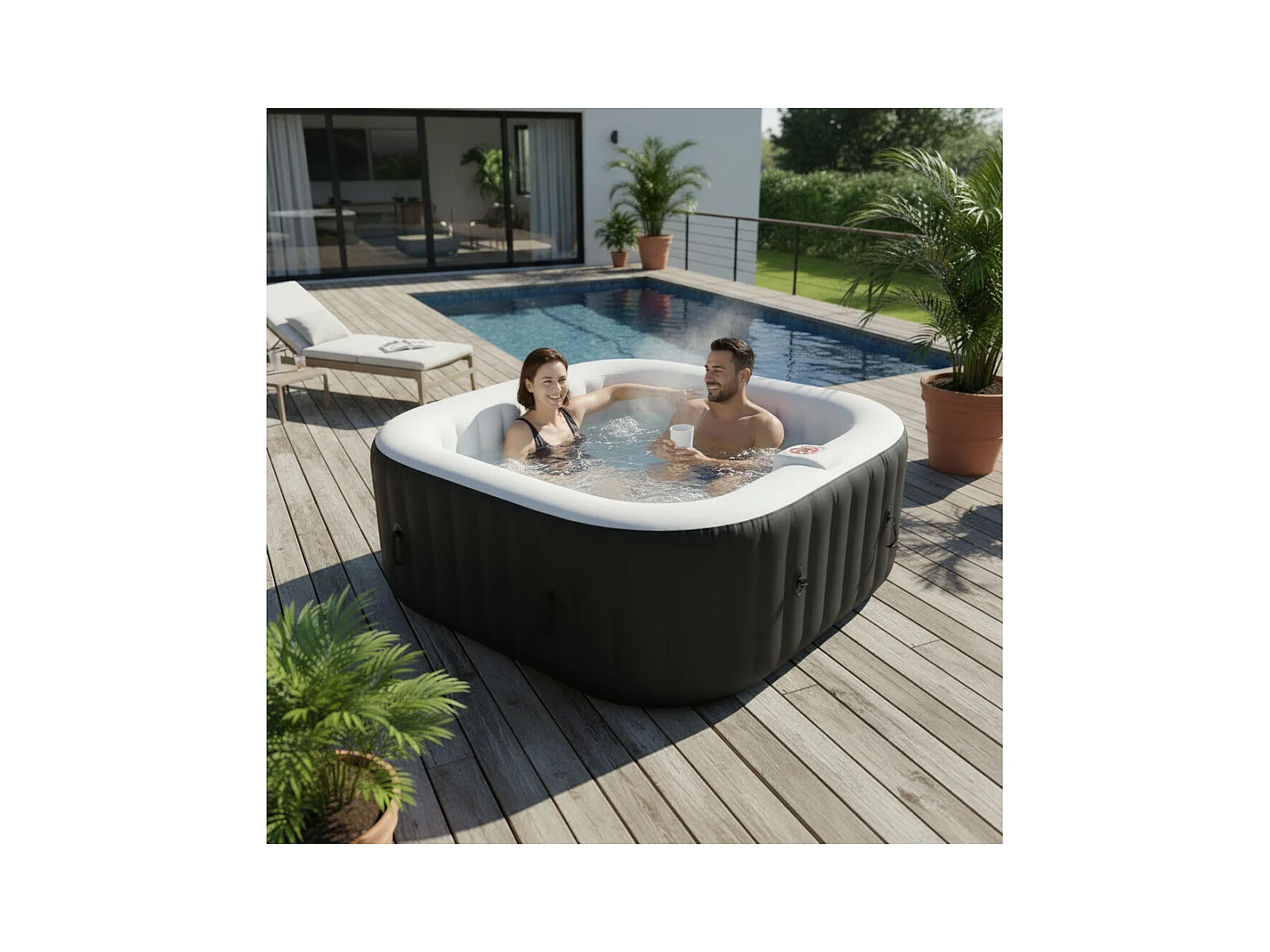 Spa gonflable 4 places carré - Ospazia - Dimensions : 155 x 155 cm - Filtre et bâche inclus