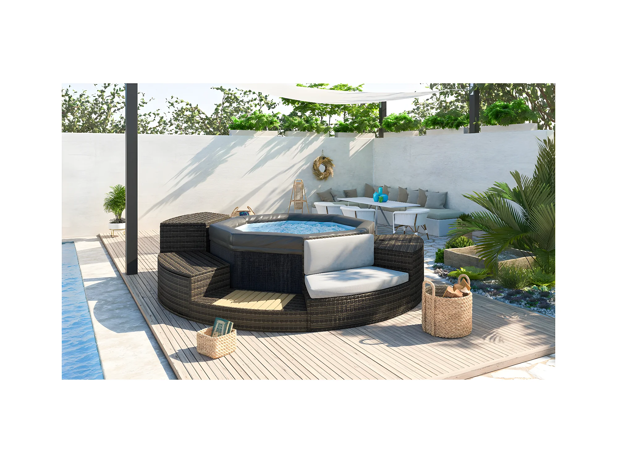 Spa Netspa Semi-Rigide Octogonal Octopus 4+2 Places 1000l 193x73cm + Mobilier + Parasol - Portable Chauffage/Filtration
