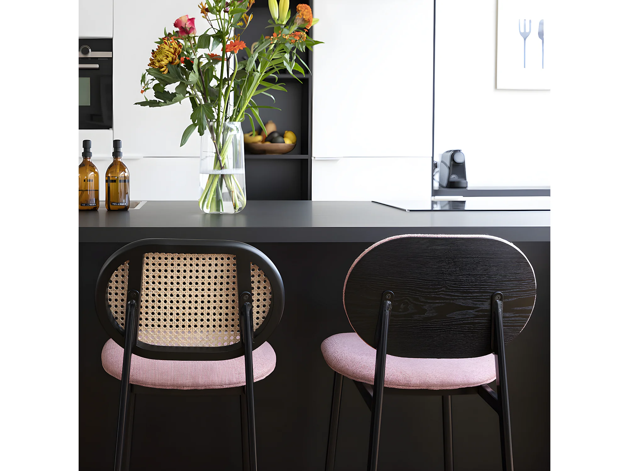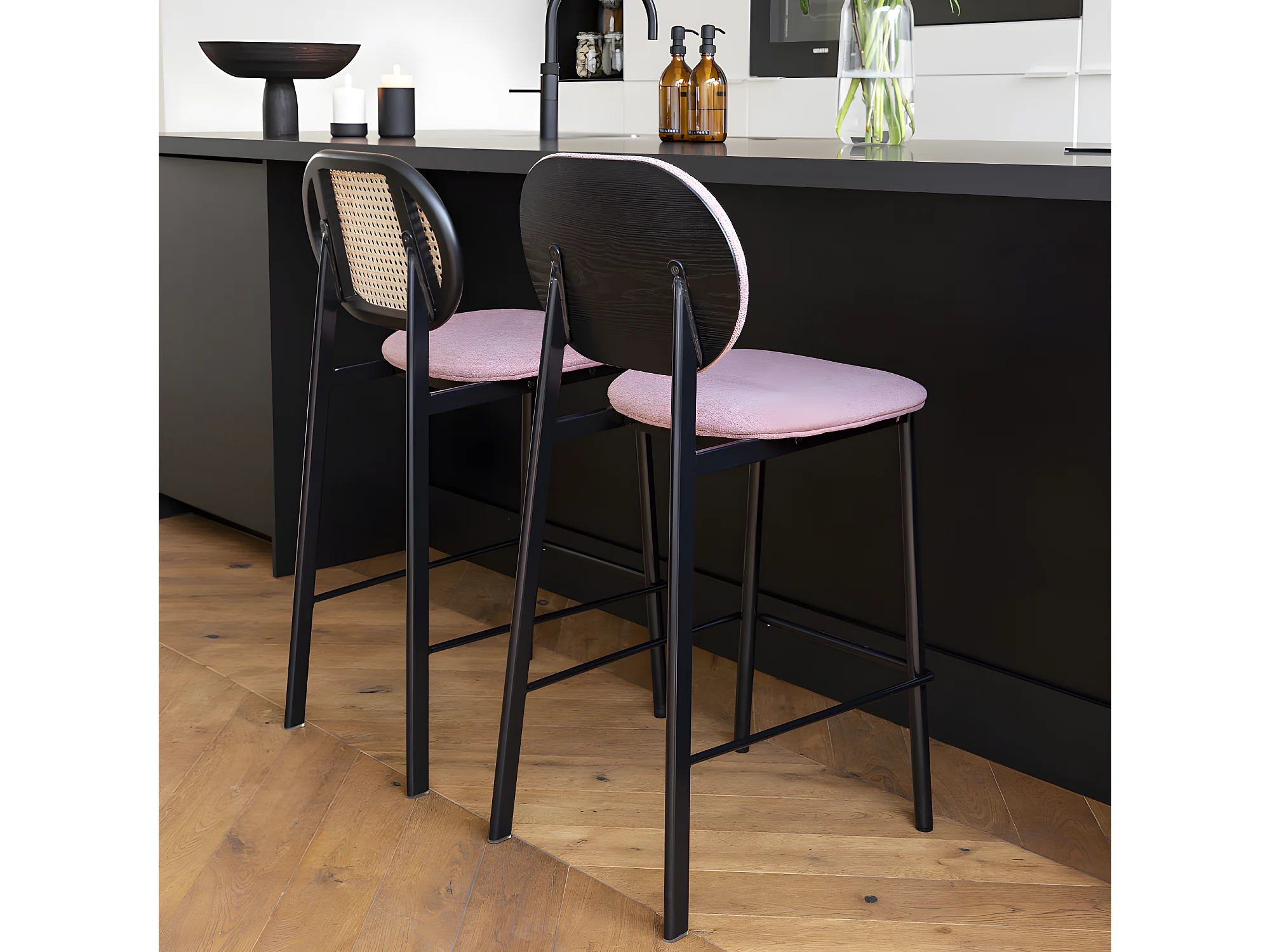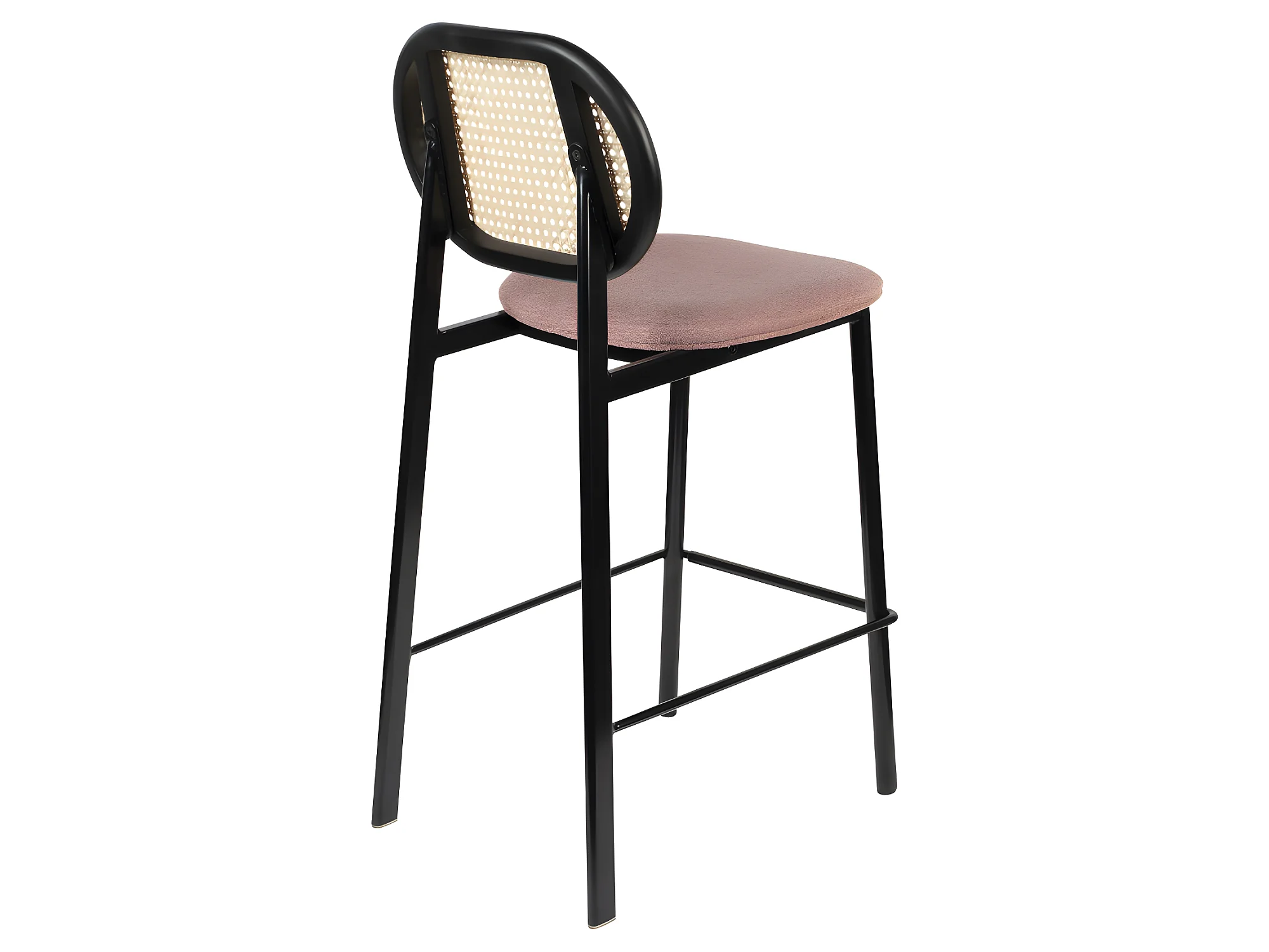 Spike - Tabouret de bar en tissu et cannage H65cm - Rose