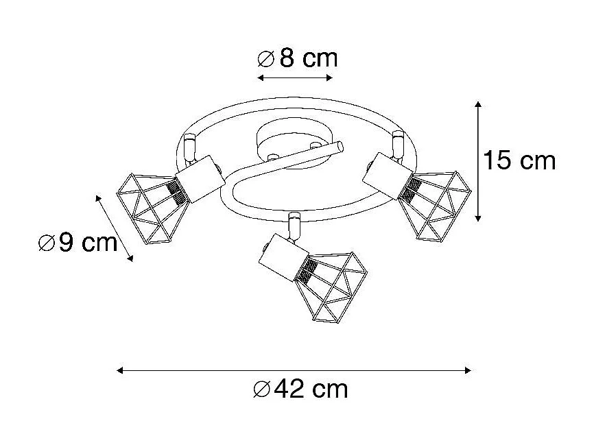 Spot moderne noir avec cuivre 3 lumières - Mesh