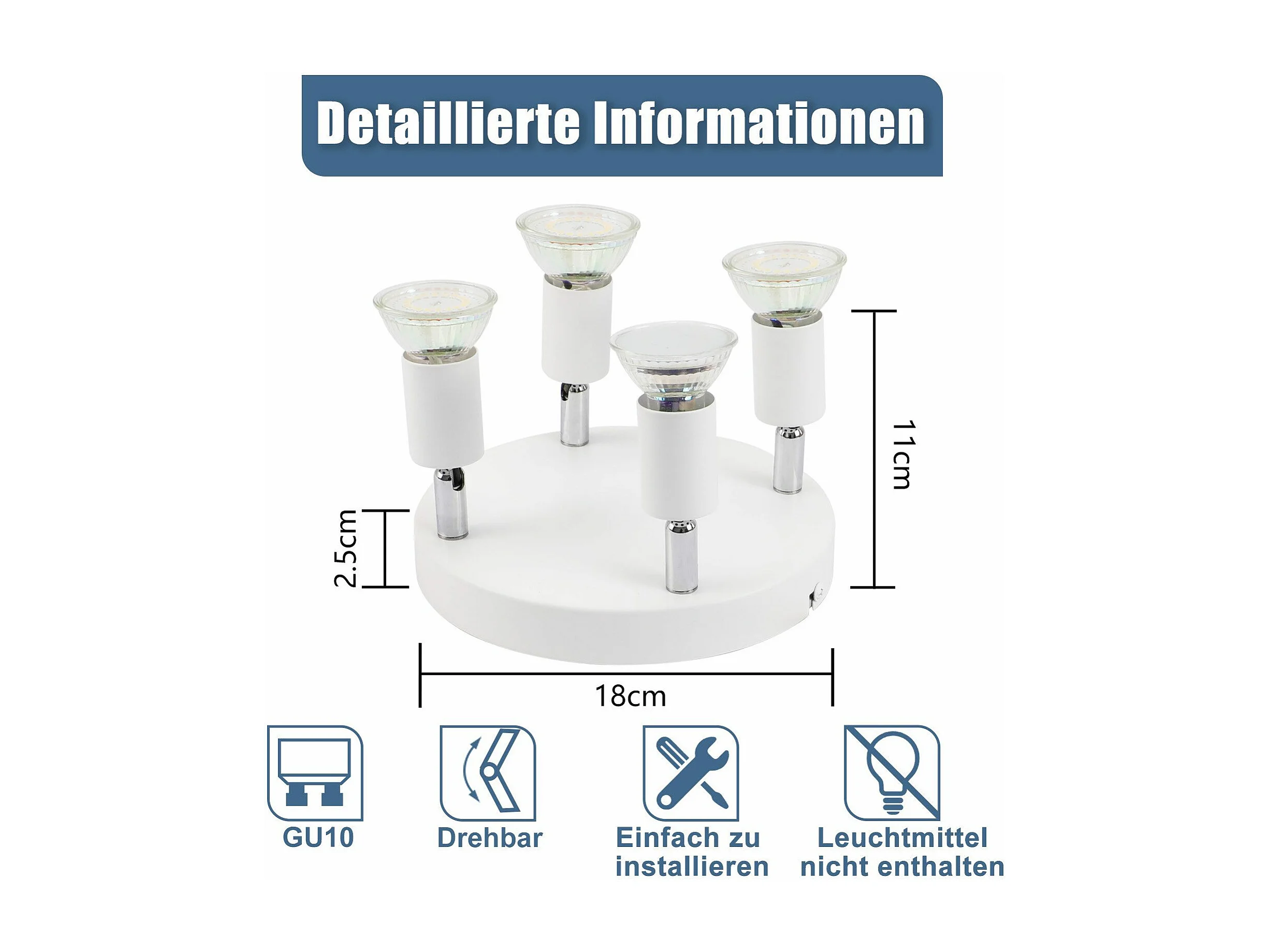 Spot de plafond LED NETTLIFE Blanc - Plafonnier orientable 4 flammes GU10 en métal moderne
