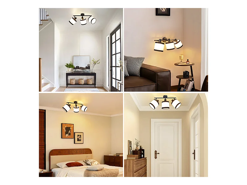 Spot de plafond NETTLIFE noir 3 flammes - Spots de plafond E14 Plafonnier tissu pivotant 350° Lampe de cuisine vintage(sans ampoule)