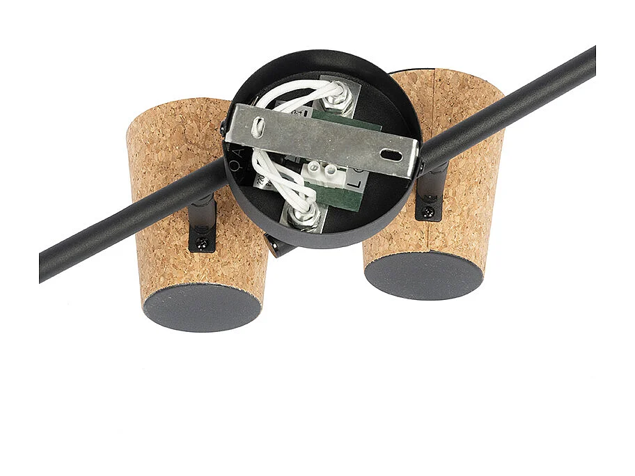 Spot de plafond noir avec abat-jour en liège réglable à 4 lumières - Corky