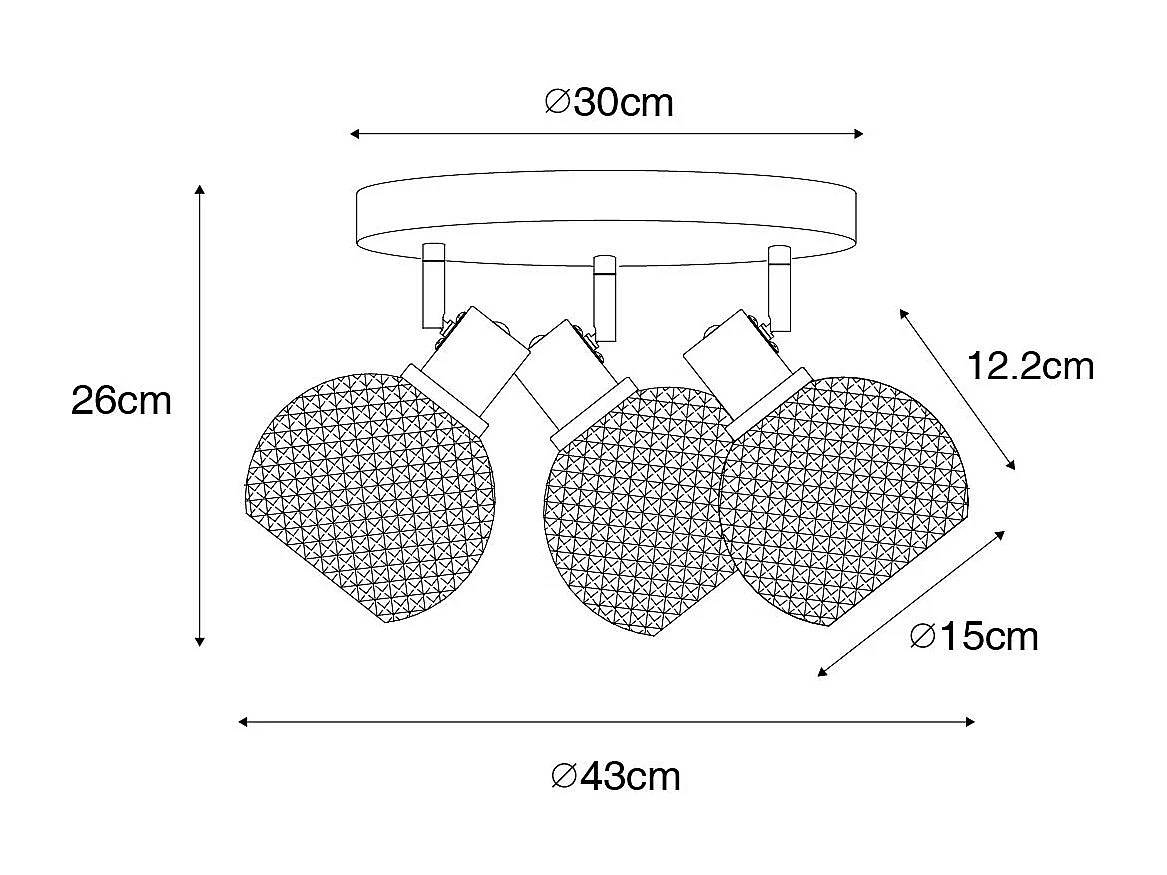 Spot design noir avec verre fumé 3 lumières rond - Chico