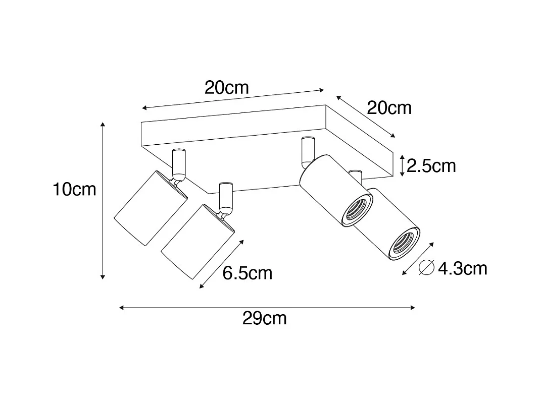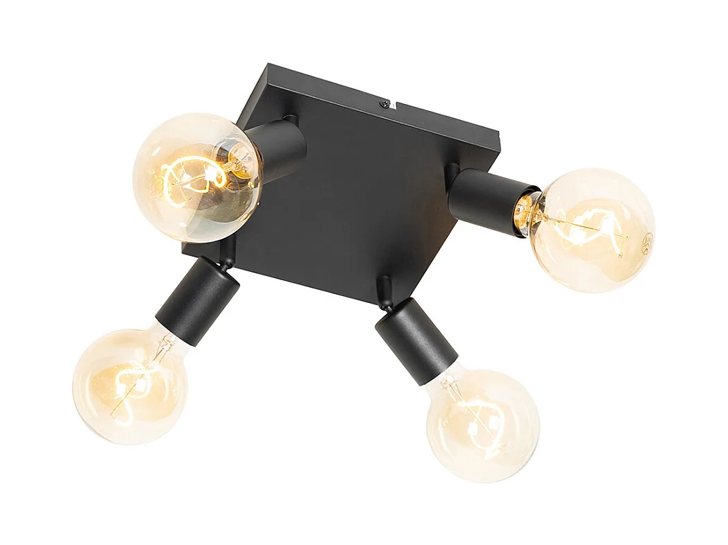 Plafonnier Omiq Moderne En Acier/Pvc - 4 Sources Lumineuses - L.30 X H.15 Cm - Noir