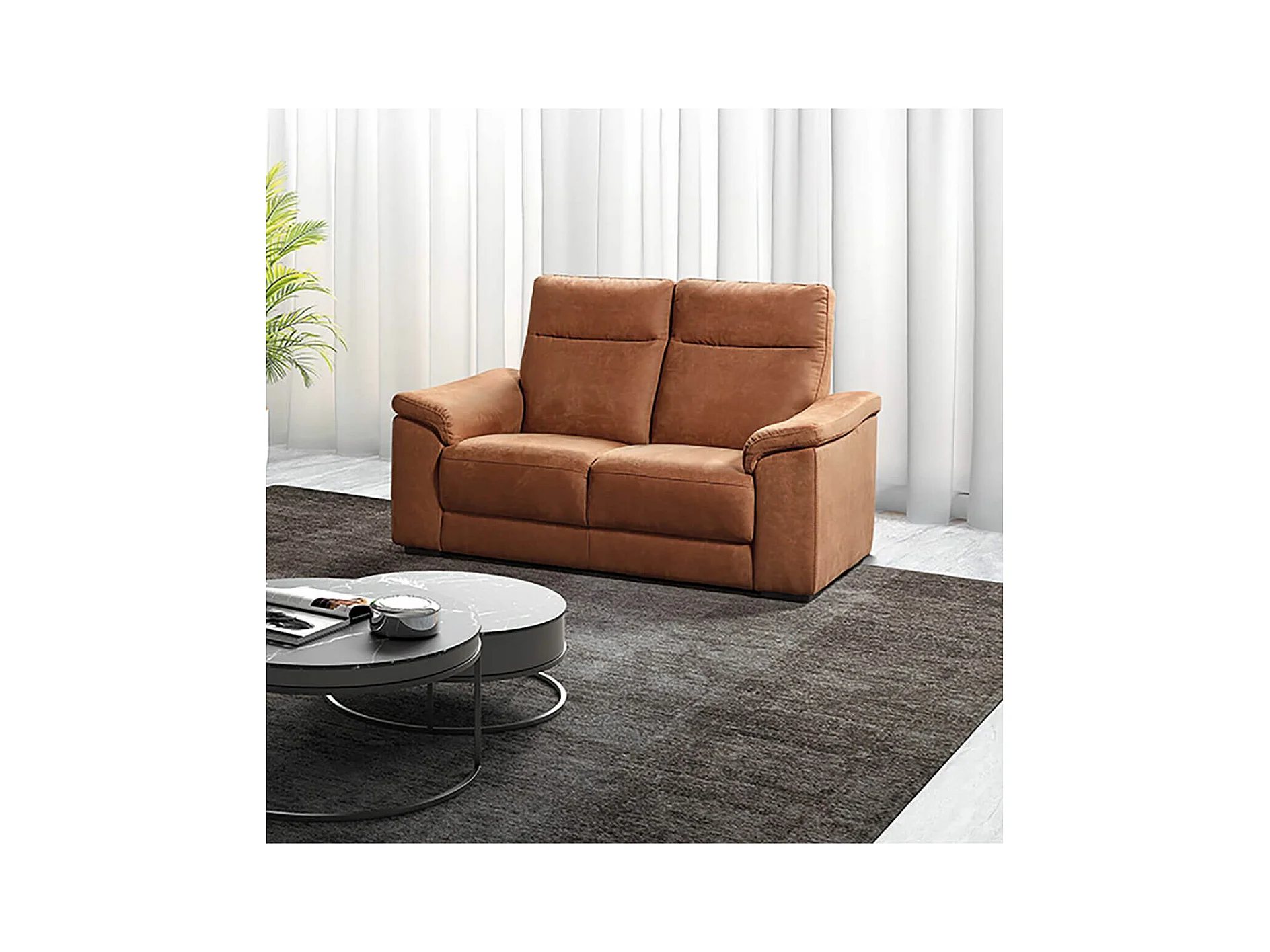 STANLEY - Canapé Fixe 2 Places Tissu Peau de Pêche Cognac