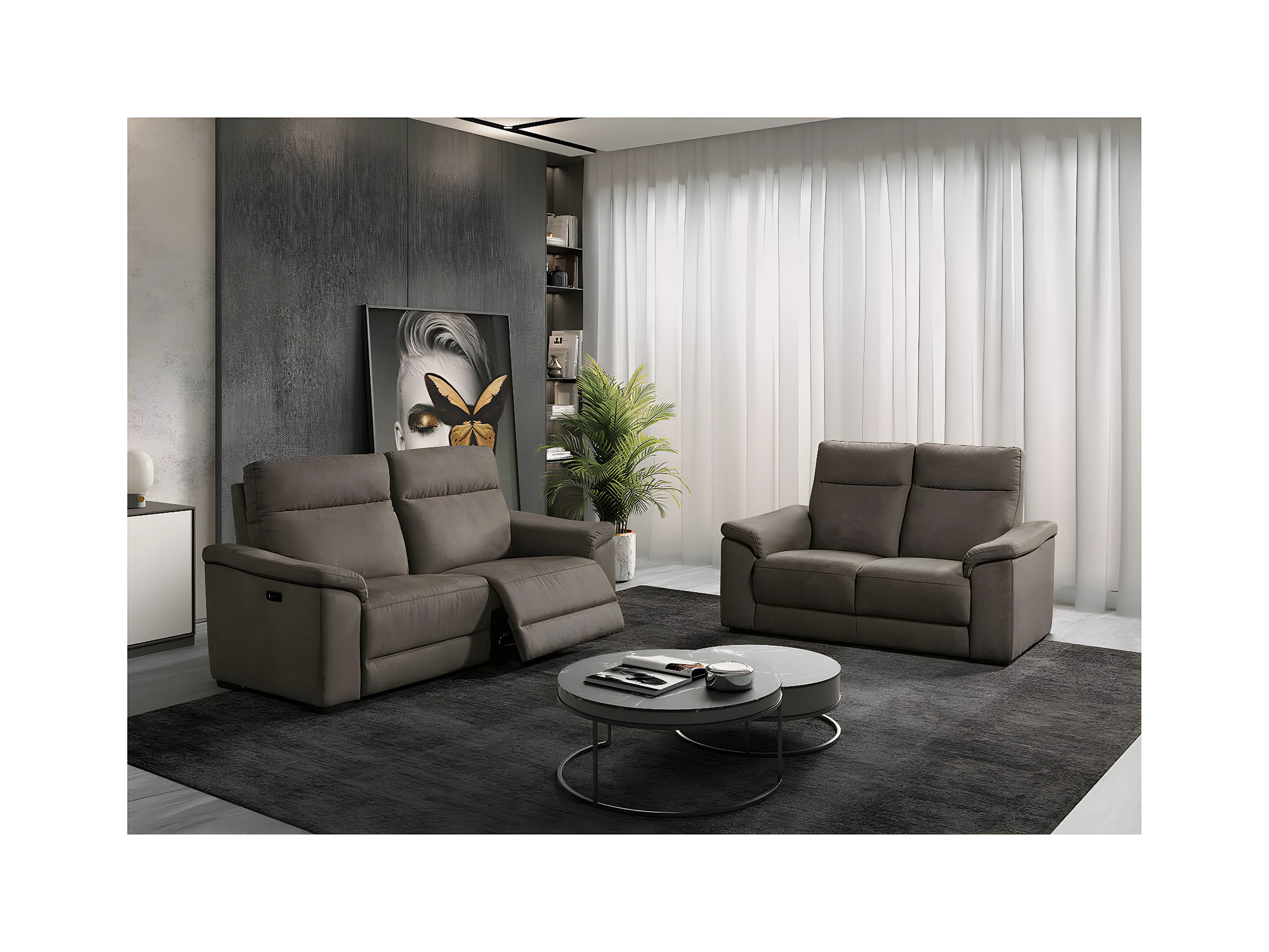 STANLEY - Canapé Fixe 2 Places Tissu Peau de Pêche Gris Foncé