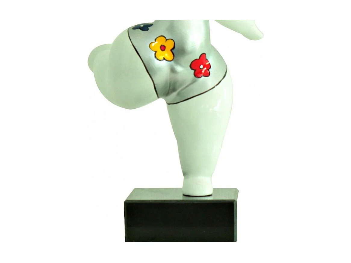 Statue femme jambe levée fleurs bleu jaune rouge H33 cm - LADY FLOWER