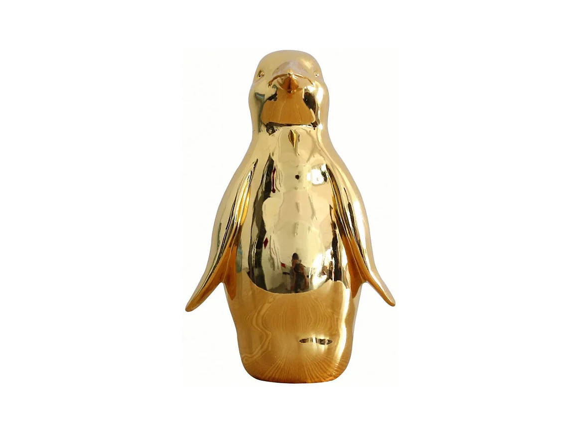 Statue pingouin en résine avec peinture chrome doré H30 cm - ROOKIE 03