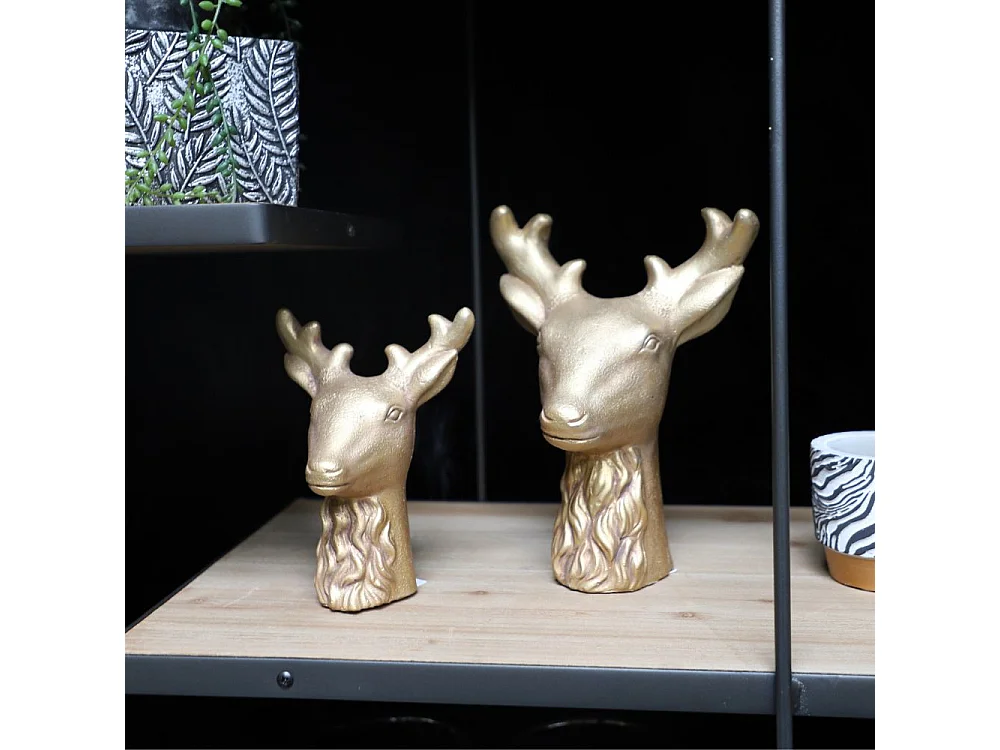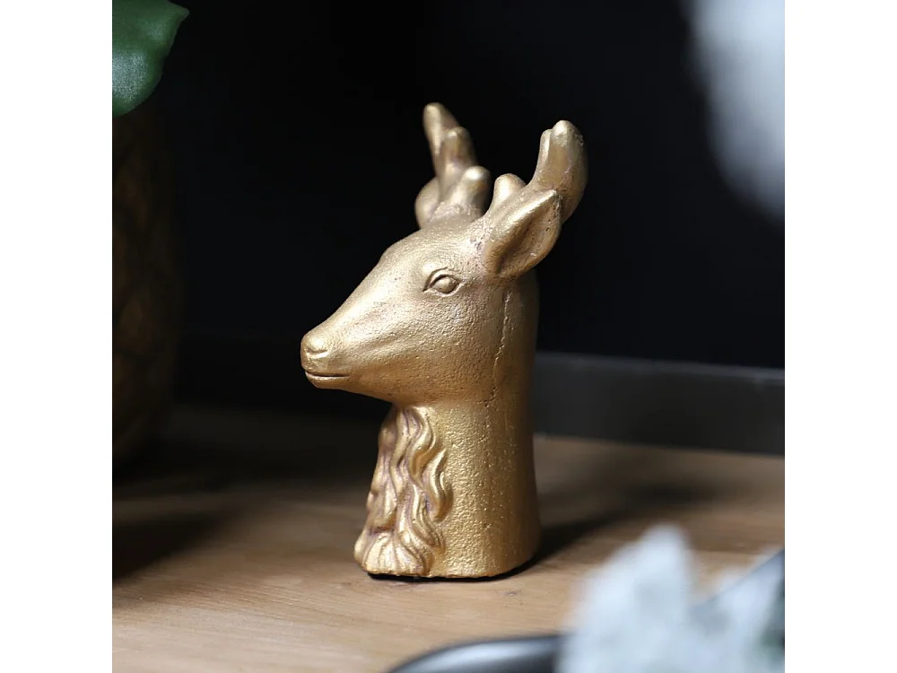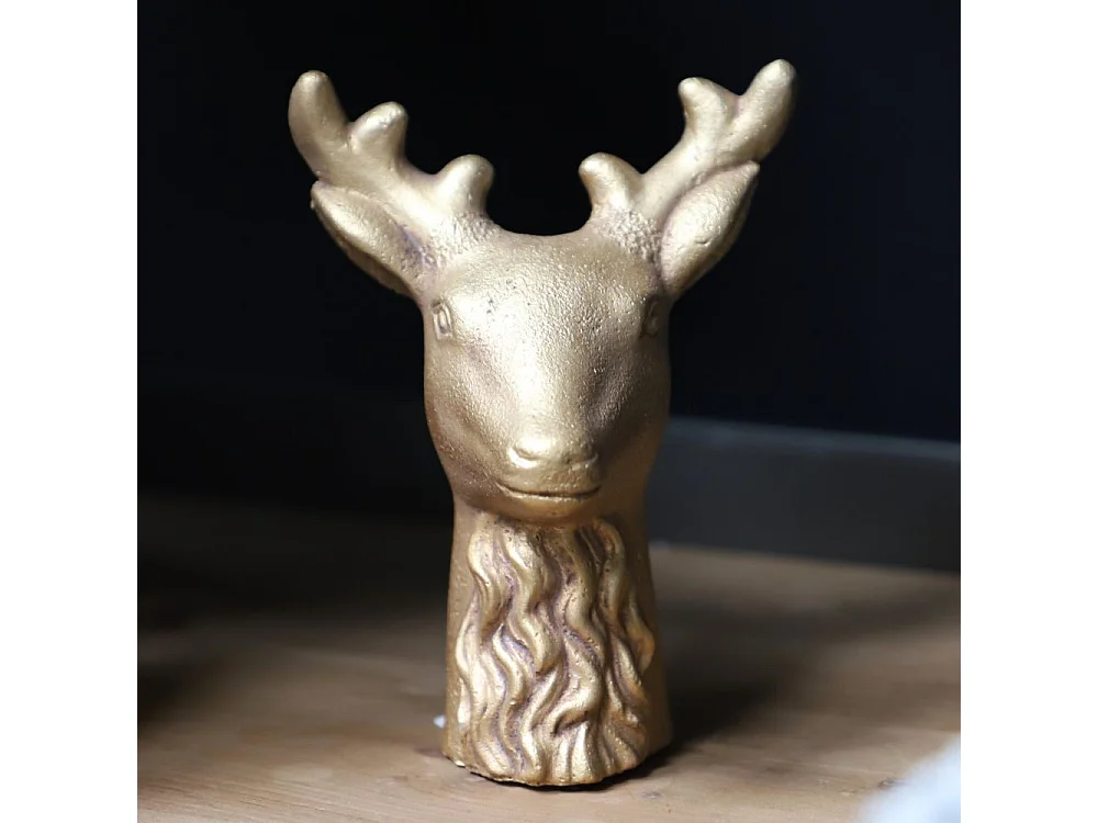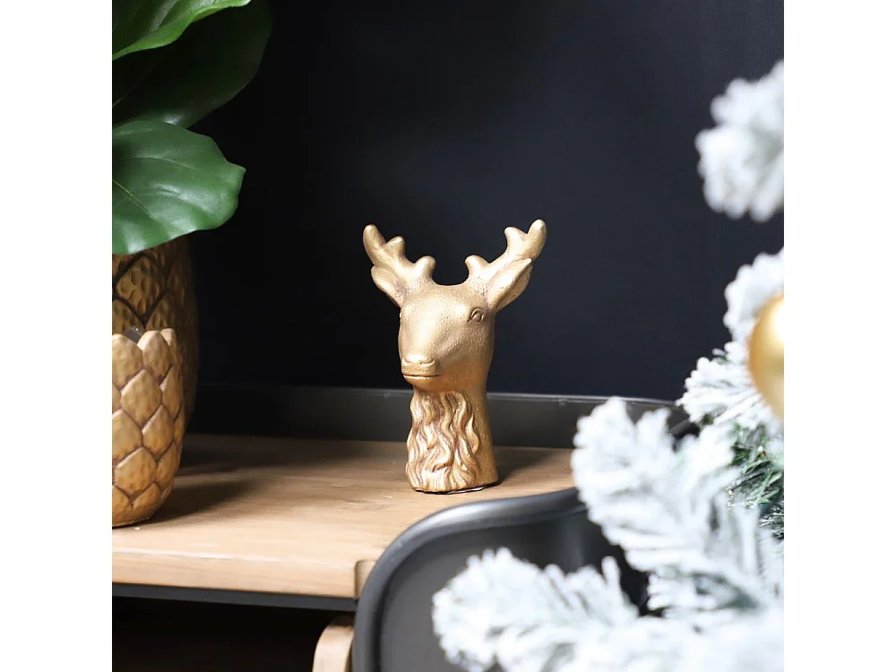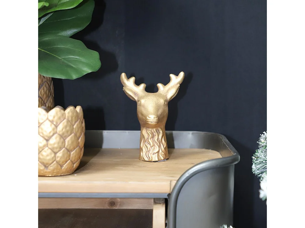 Statue statuette sculpture décoration de Noël cerf béton doré 16.5cm