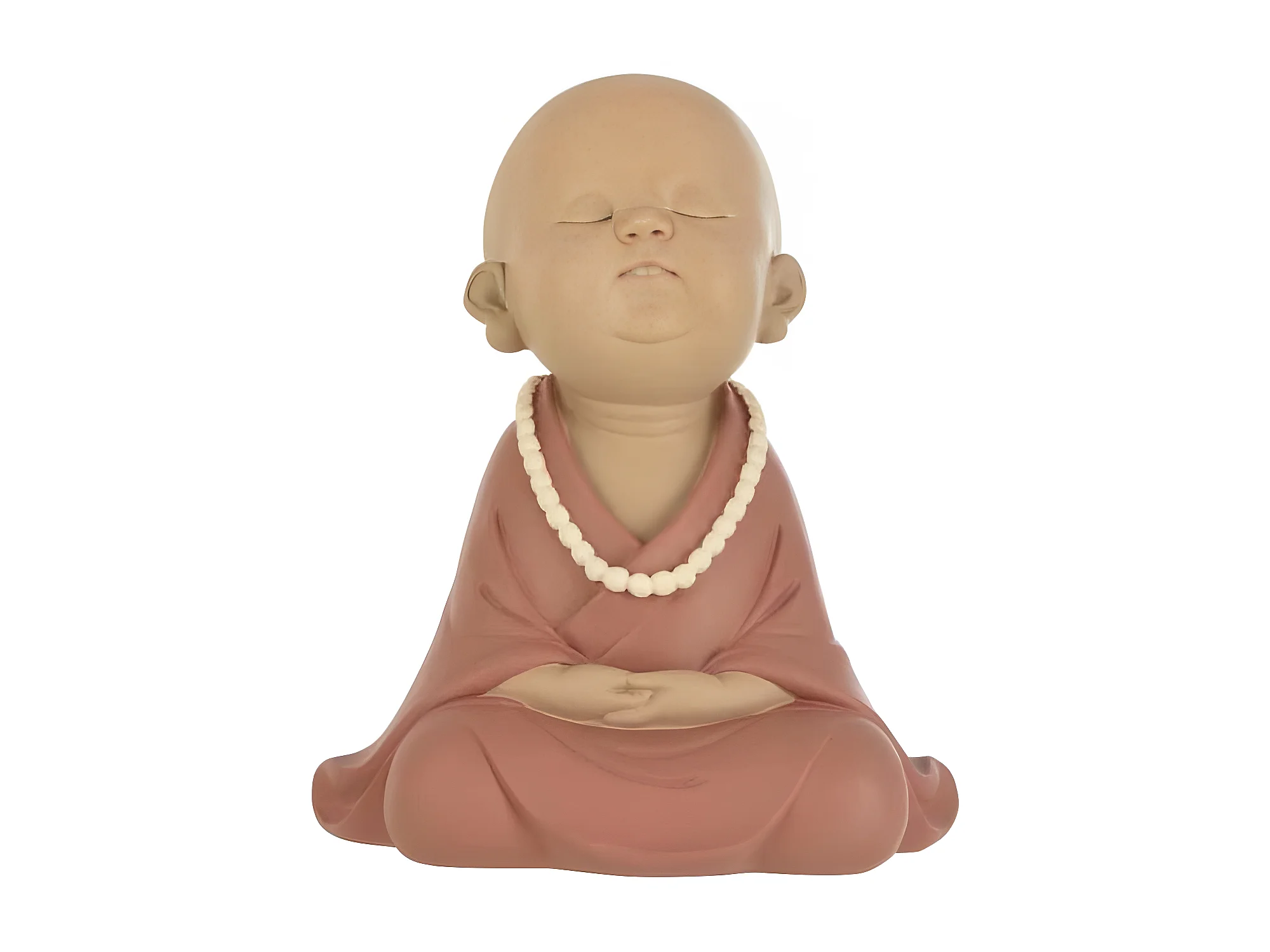 Statuette Déco "Moine Zen" 23cm Rose & Naturel