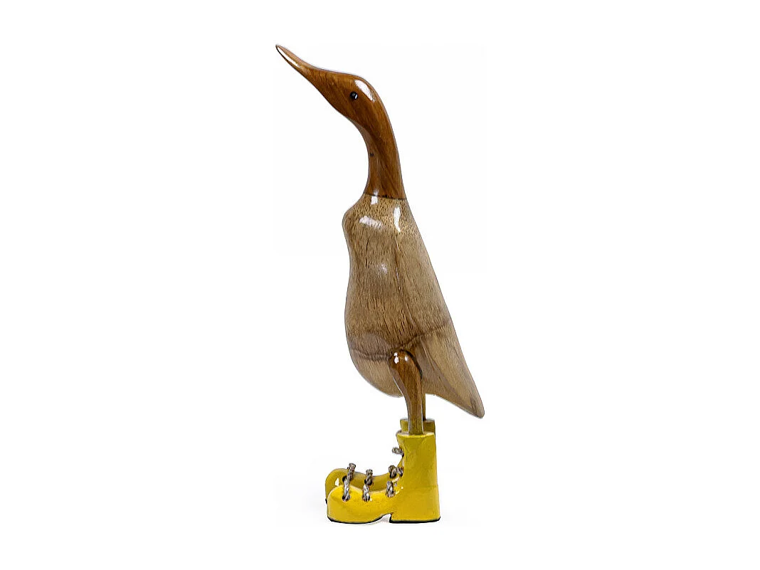 Statuette décorative H. 40 cm canard bottes jaunes en bois de teck – DAFLY