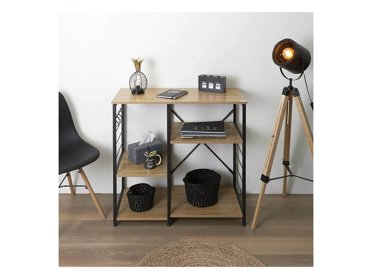 STAVI - Meuble de Rangement Métal Noir Plateaux Effet Bois