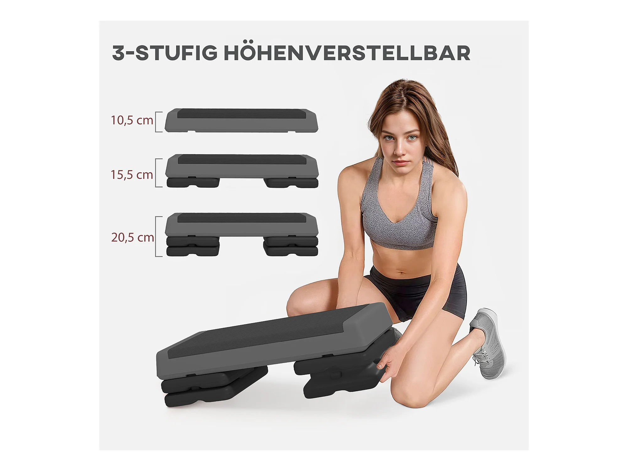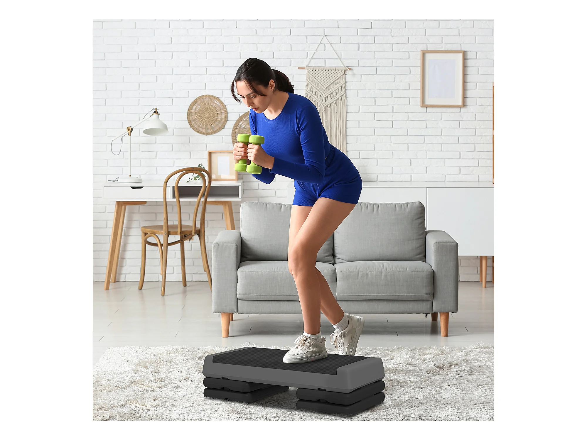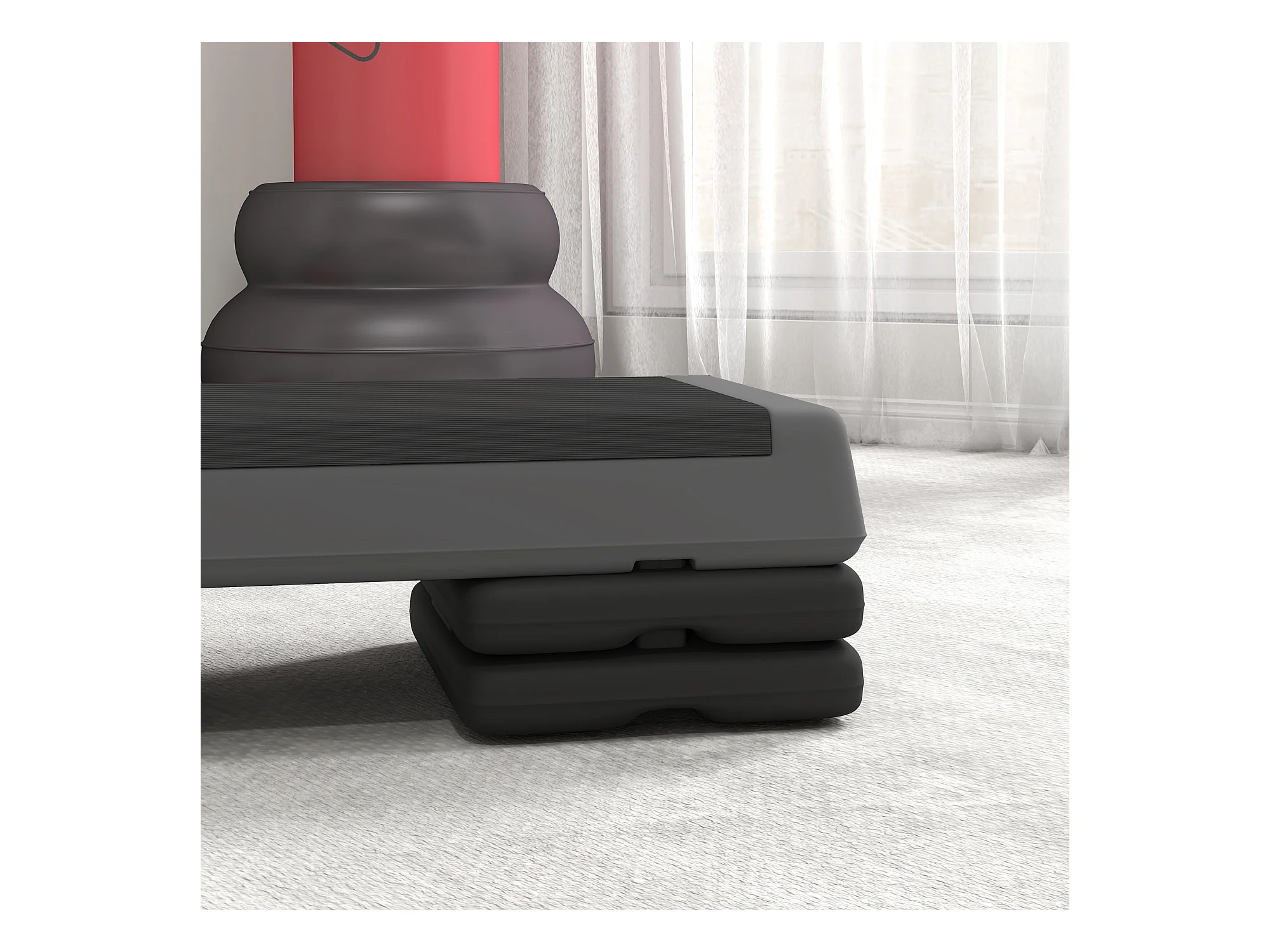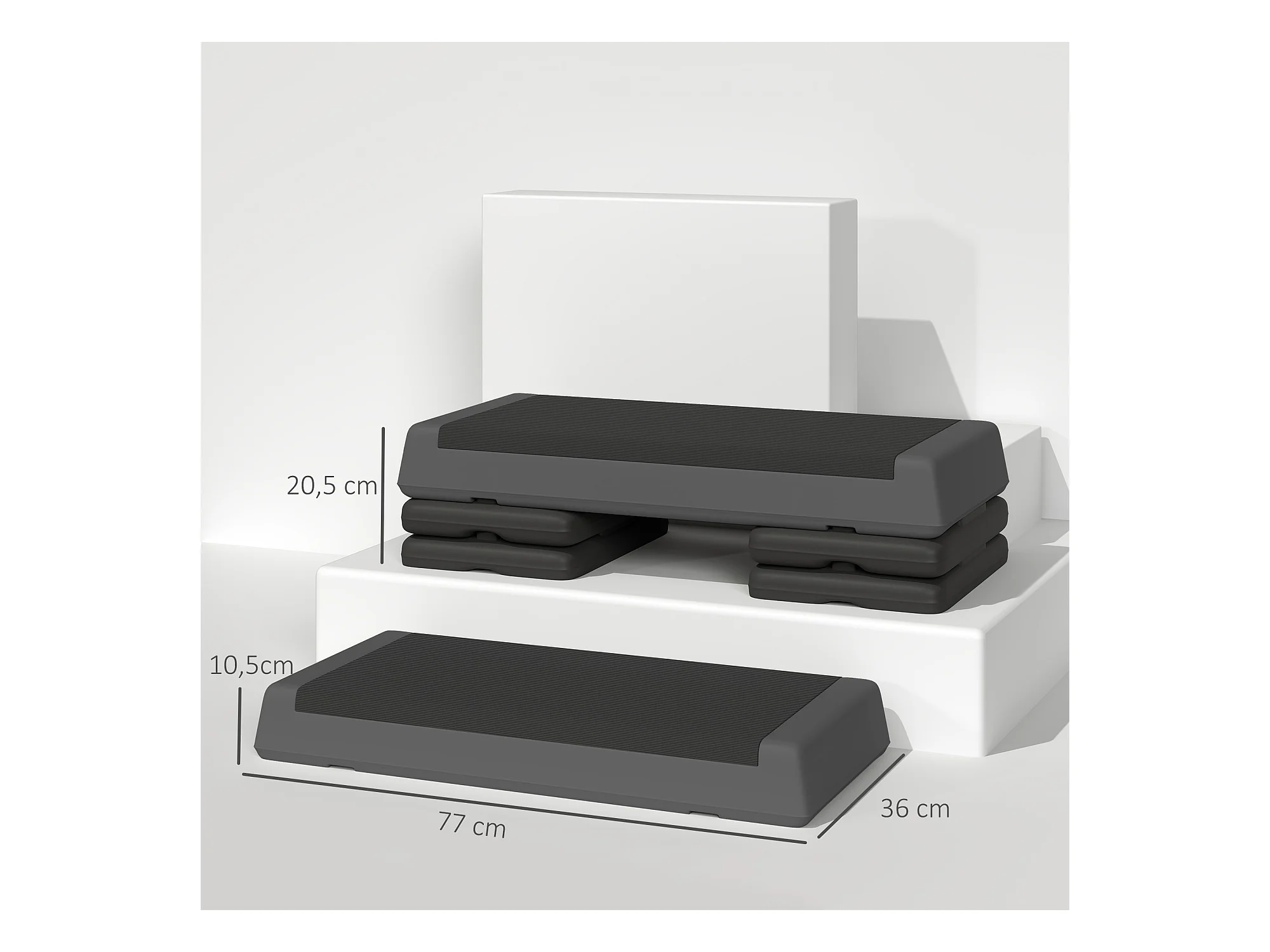 Step aérobic réglable en hauteur, antidérapant, plastique, gris (77x36x20.5cm)