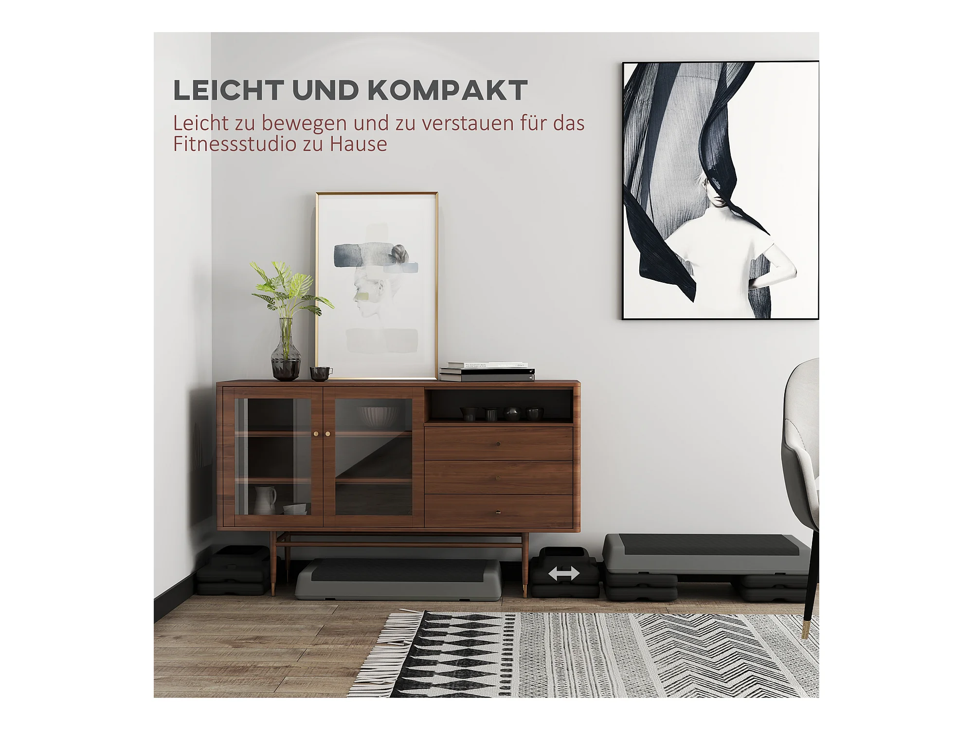 Plateforme de step aérobic réglable, surface antidérapante, polyéthylène, gris, avec 4 rehausseurs (109x41x11 cm)