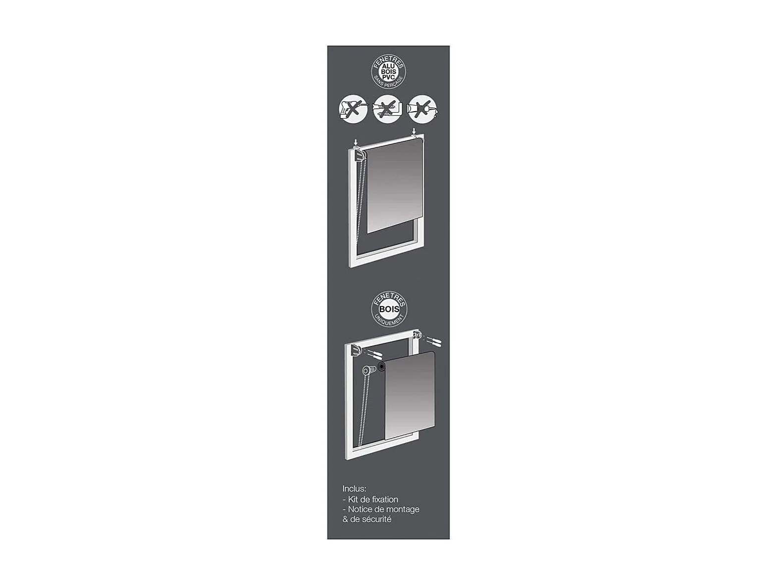 Store Enrouleur Tamisant "Lagune" 60x180cm Blanc & Gris