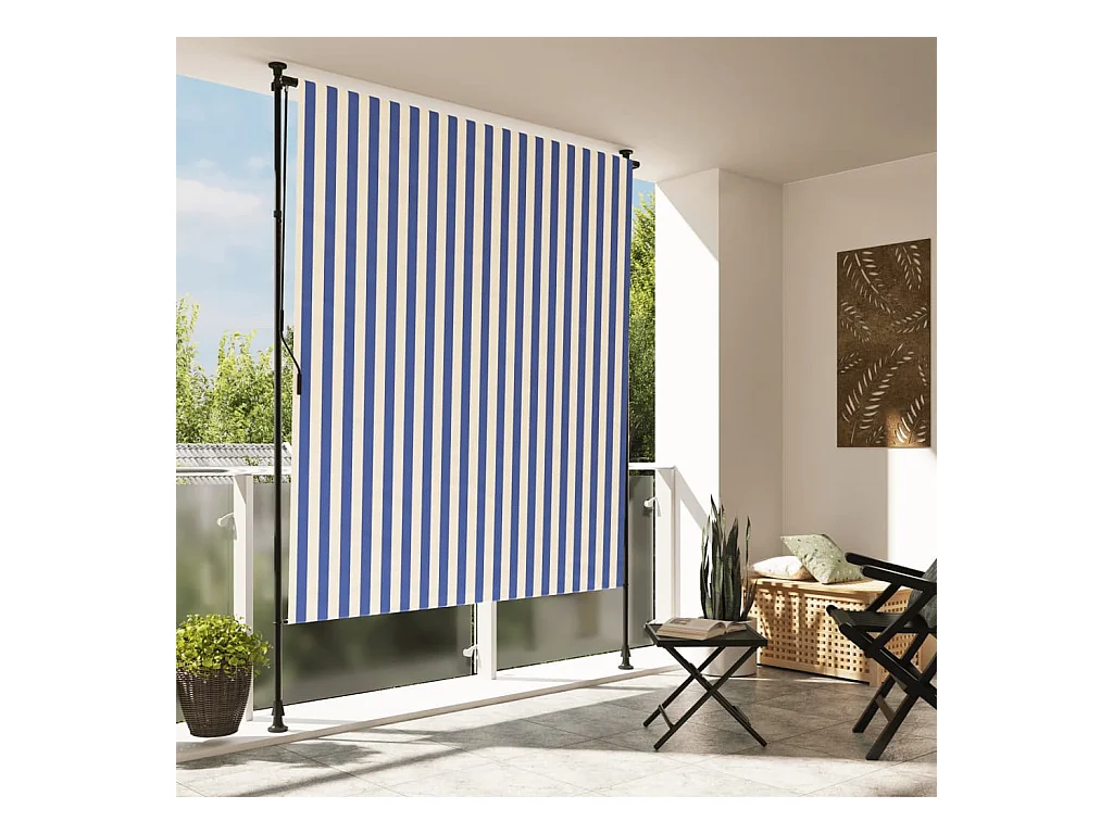 Store roulant d'extérieur bleu et blanc 150x270 cm tissu acier FR675840