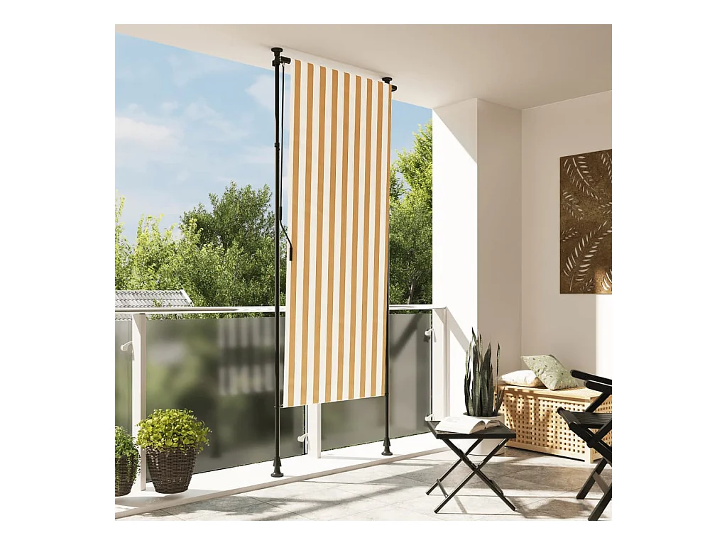 Store roulant d'extérieur jaune et blanc 120x270 cm tissu acier FR604321