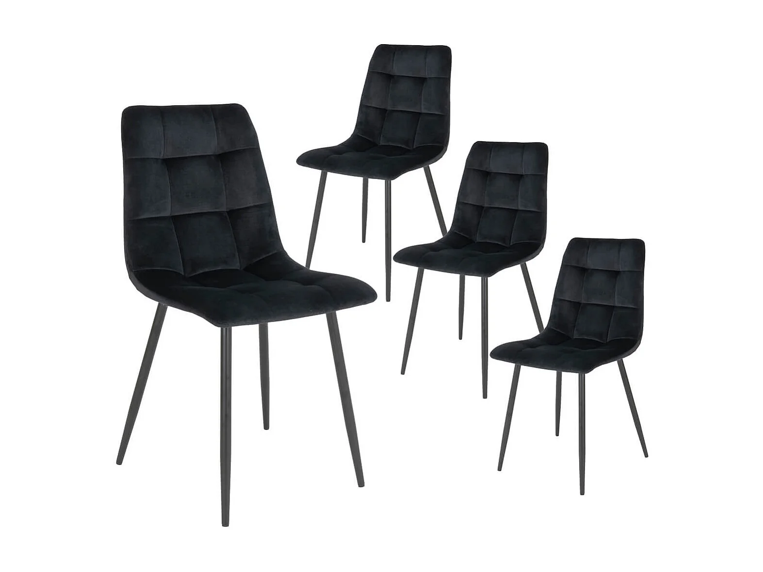 STRIB - Lot de 4 Chaises Velours Noir et Piétement Acier