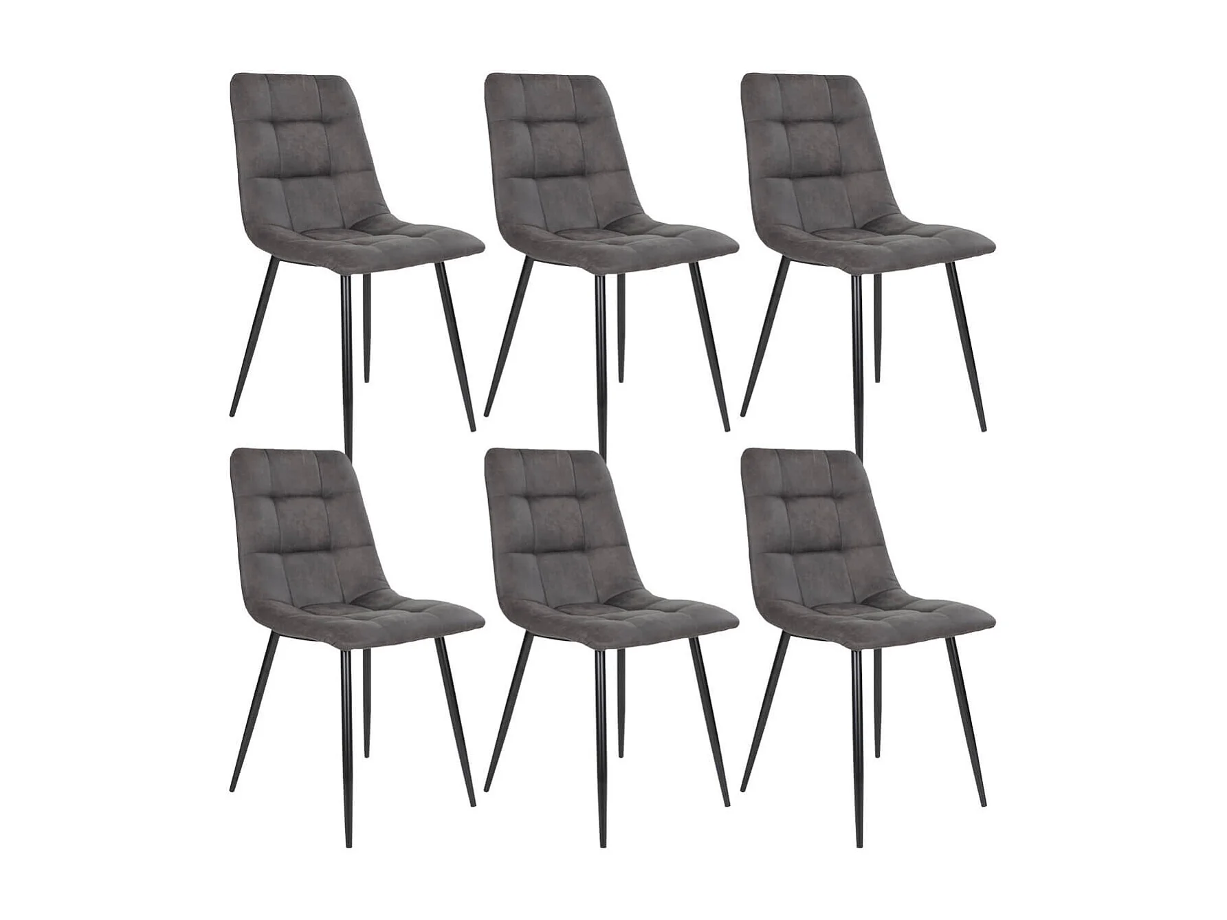 STRIB - Lot de 6 Chaises Tissu Gris Foncé et Piétement Acier